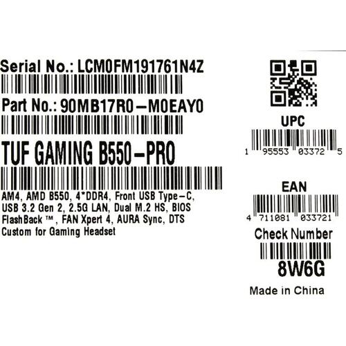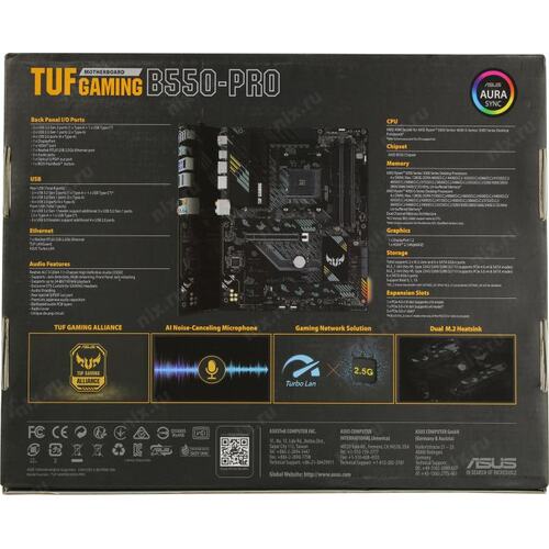 Материнская плата Asus TUF GAMING B550-PRO Soc-AM4 AMD B550 4xDDR4 ATX AC`97 8ch(7.1) 2.5Gg RAID+HDMI+DP