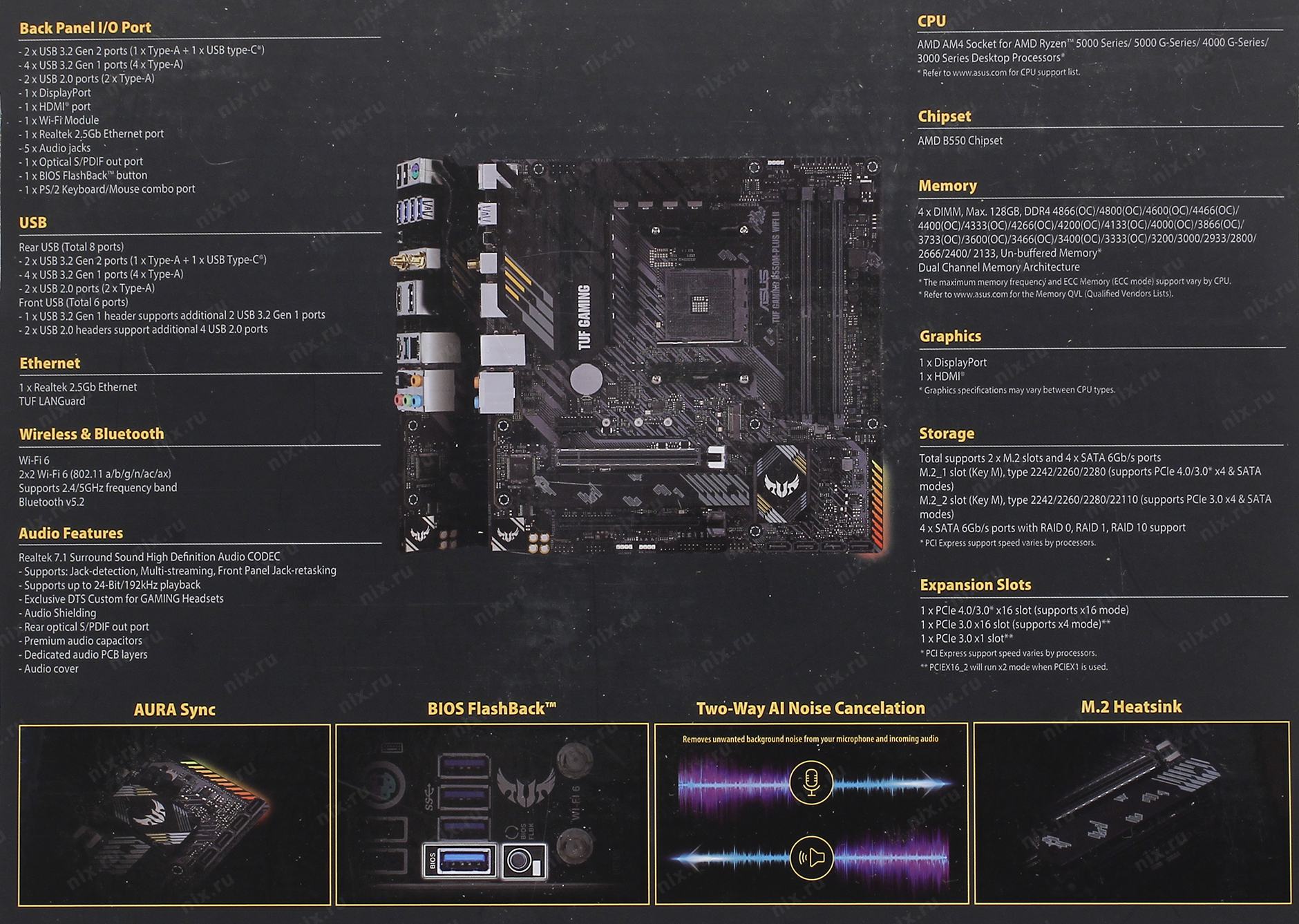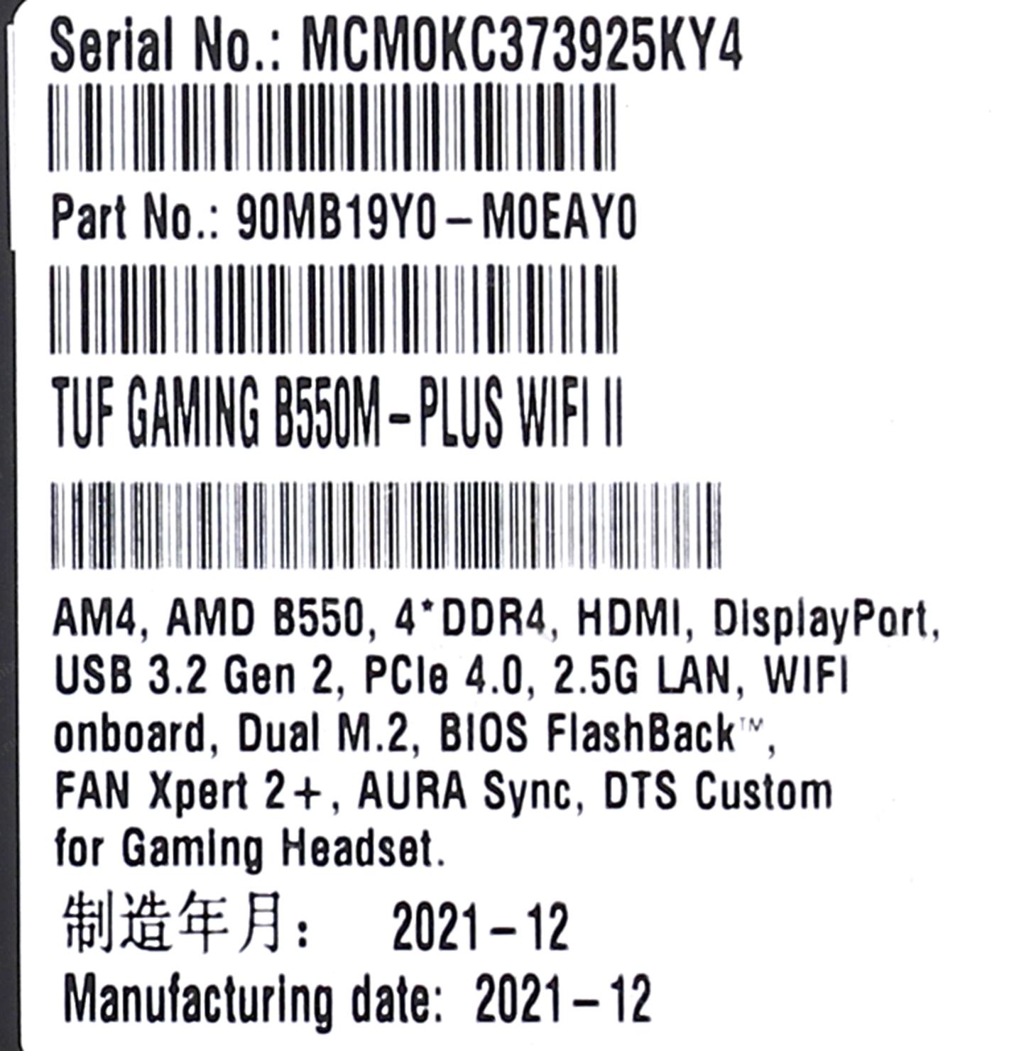 Материнская плата Asus TUF GAMING B550M-PLUS WIFI II Soc-AM4 AMD B550 4xDDR4 mATX AC`97 8ch(7.1) 2.5Gg RAID+HDMI+DP | НИКС Екатеринбург
