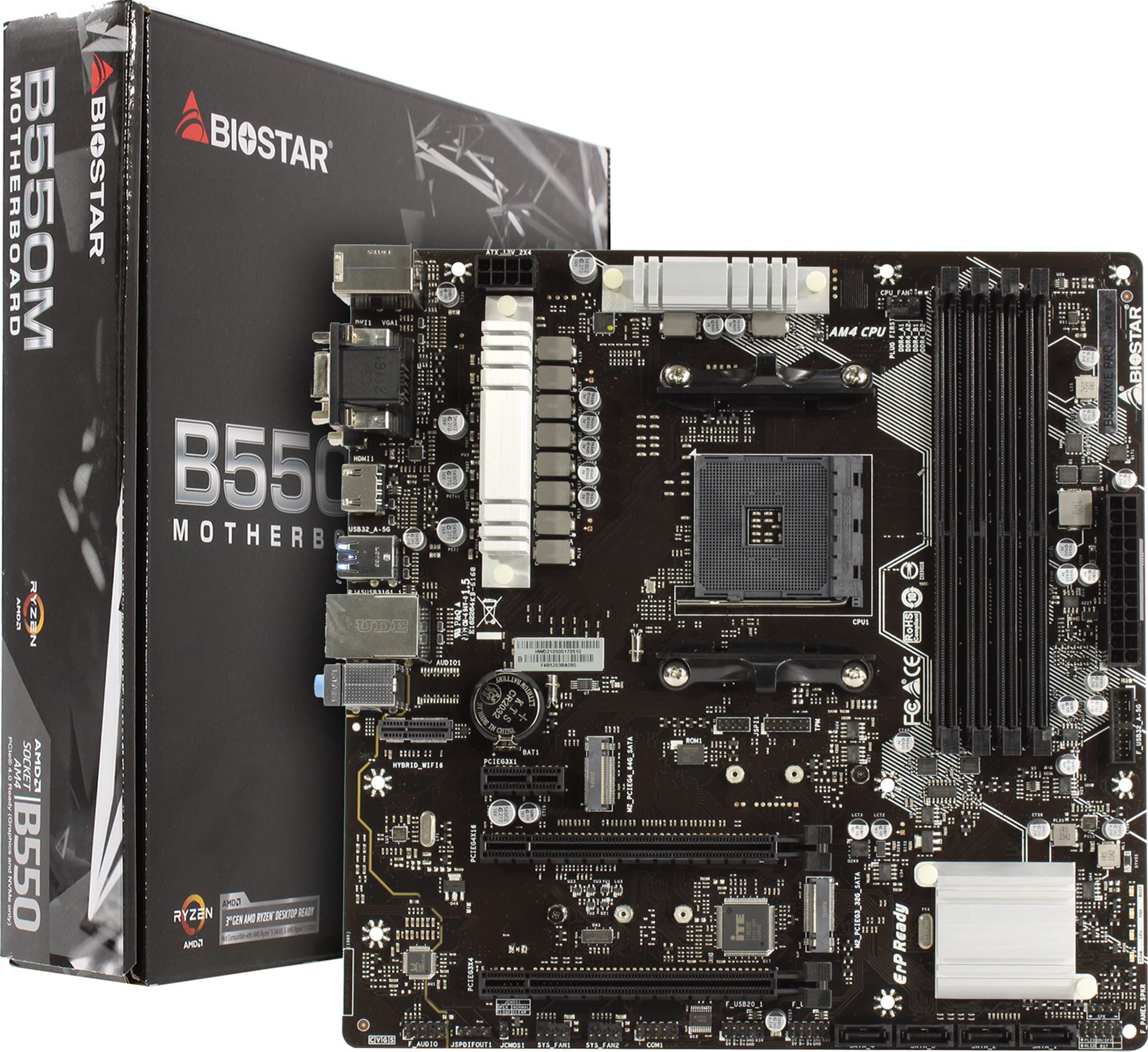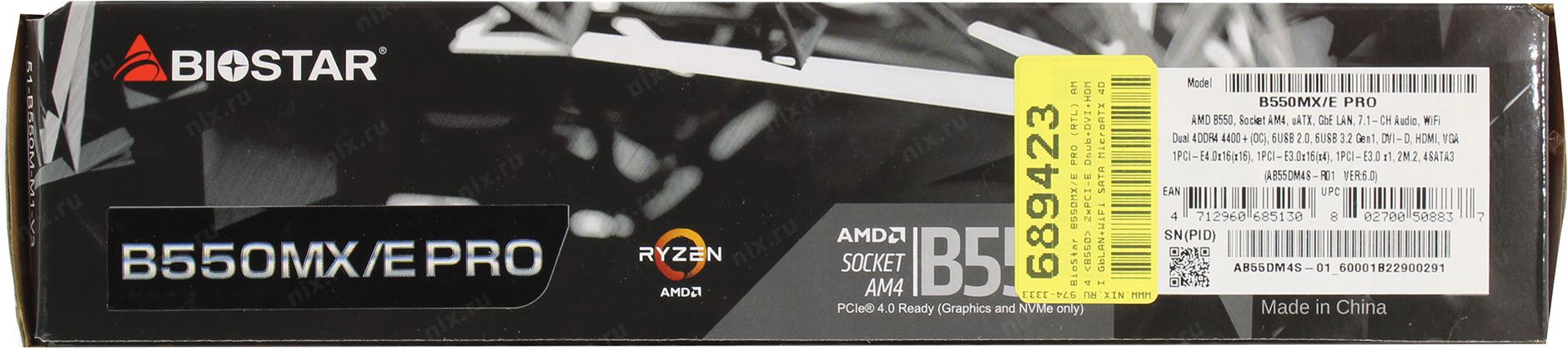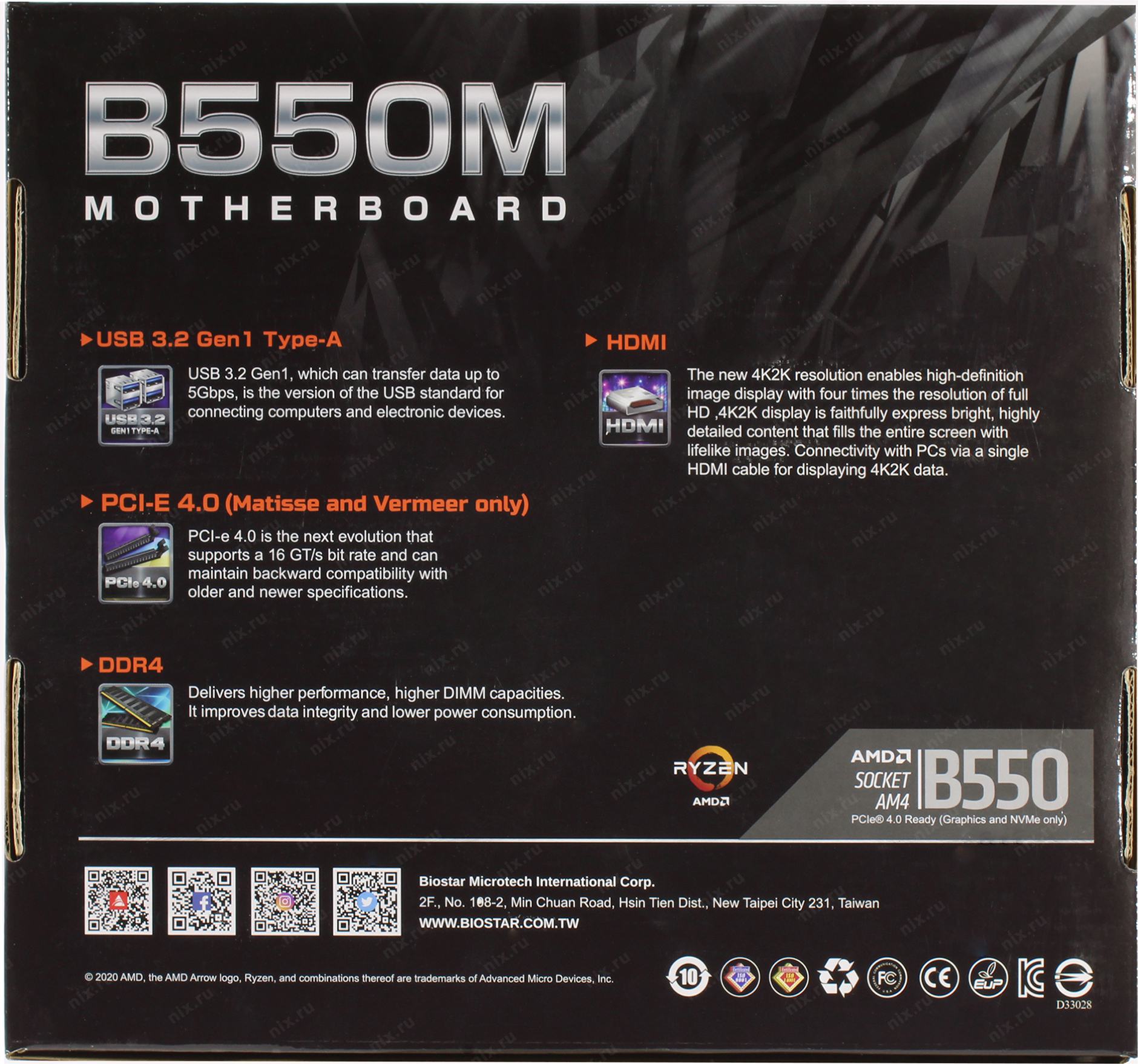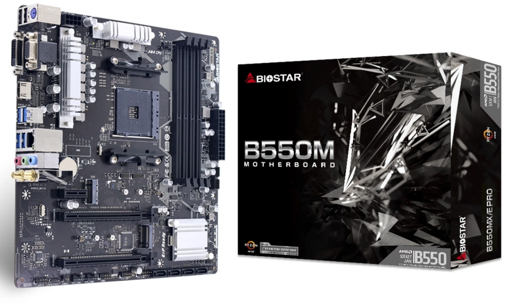 Материнская плата Biostar B550MX/E PRO Soc-AM4 AMD B550 4xDDR4 mATX AC`97 8ch(7.1) GbLAN RAID+VGA+DVI+HDMI