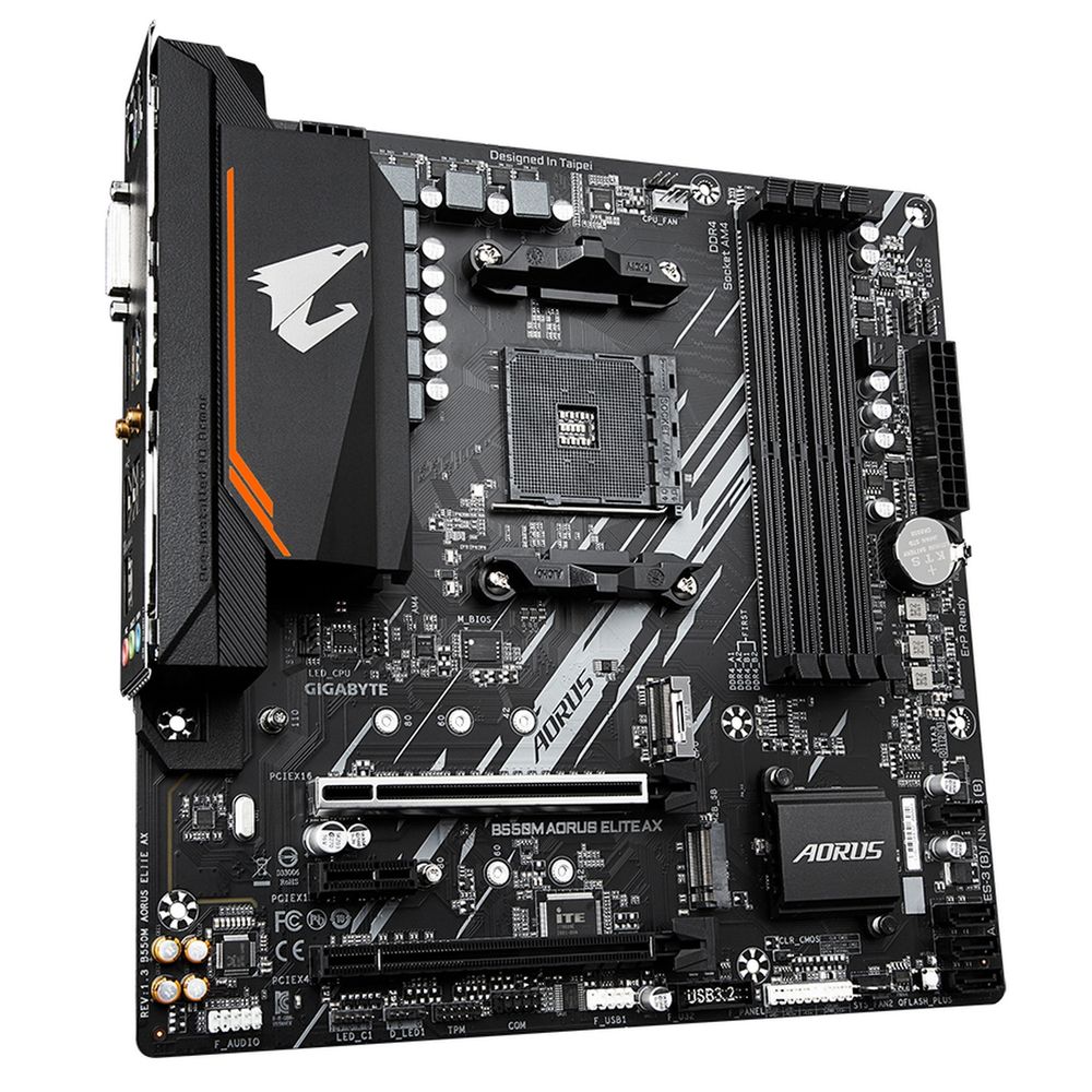 Материнская плата M/B GIGABYTE B550M AORUS ELITE AX (RTL) AM4 <B550> 2xPCI-E DVI+HDMIGbLAN+WiFi SATA RAID MicroATX 4DDR4 | НИКС Екатеринбург