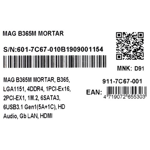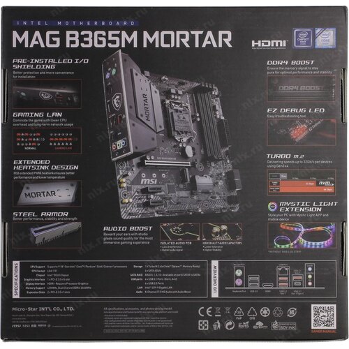 Материнская плата MSI MAG B365M MORTAR Soc-1151v2 Intel B365 4xDDR4 mATX AC`97 8ch(7.1) GbLAN RAID+HDMI