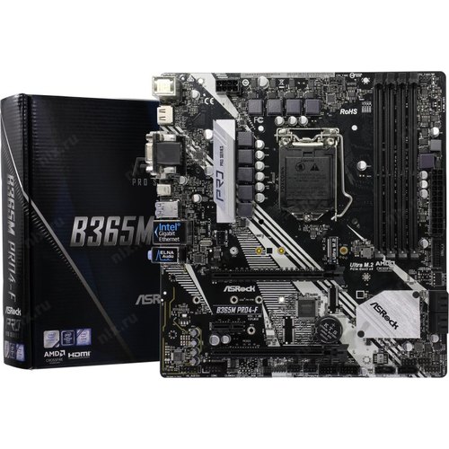 Материнская плата Asrock B365M PRO4-F Soc-1151v2 Intel B365 4xDDR4 mATX AC`97 8ch(7.1) GbLAN+VGA+DVI+HDMI