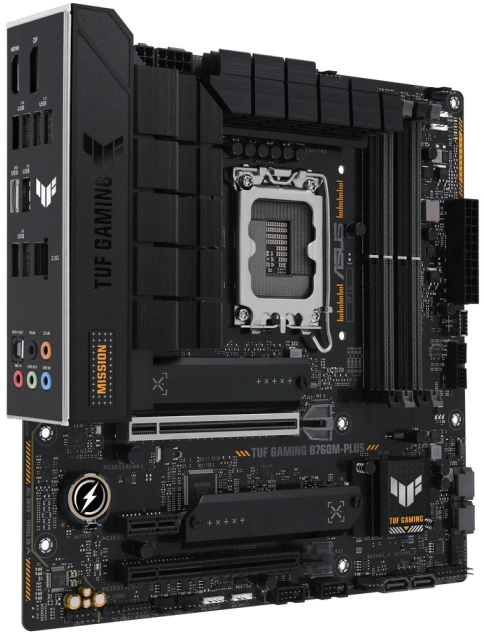 Материнская плата ASUS TUF GAMING B760M-PLUS (Socket 1700, mATX, 4xDDR5(192GB), DP/HDMI, 1xPCIe 5.0x16/1xPCIe 4.0x16/1xPCIe 4.0, 1xLAN (2.5GbE), 4xSATA 6Gb/s, 2xM.2, 1xType-C, 5xUSB 3.2, 2xUSB 2.0) [90MB1ES0-M1EAY0]