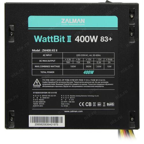 Блок питания Zalman ZM400-XEII, 400W, ATX12V v2.3, Dual Forward Switching Circuit Design, 12cm Fan, Retail