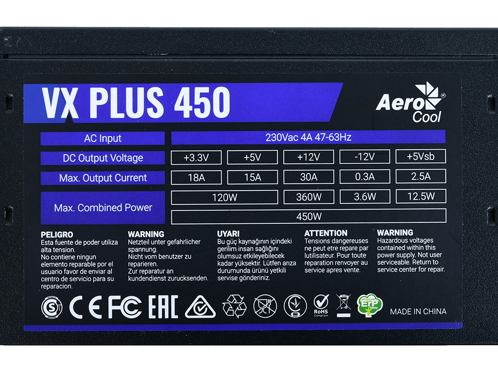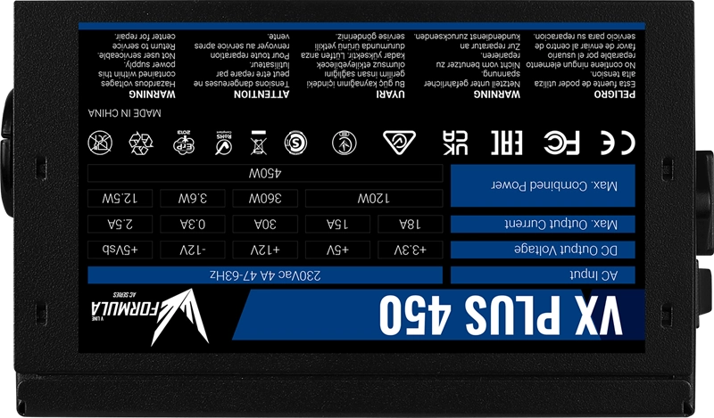 Блок питания Aerocool/Formula VX-450 PLUS (RTL) 450W ATX (24+2x4+6пин)
