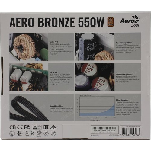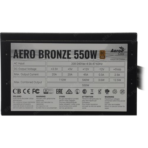 Блок питания Aerocool ATX 550W AERO BRONZE 80+ bronze (20+4pin) APFC 120mm fan 5xSATA RTL | НИКС Екатеринбург