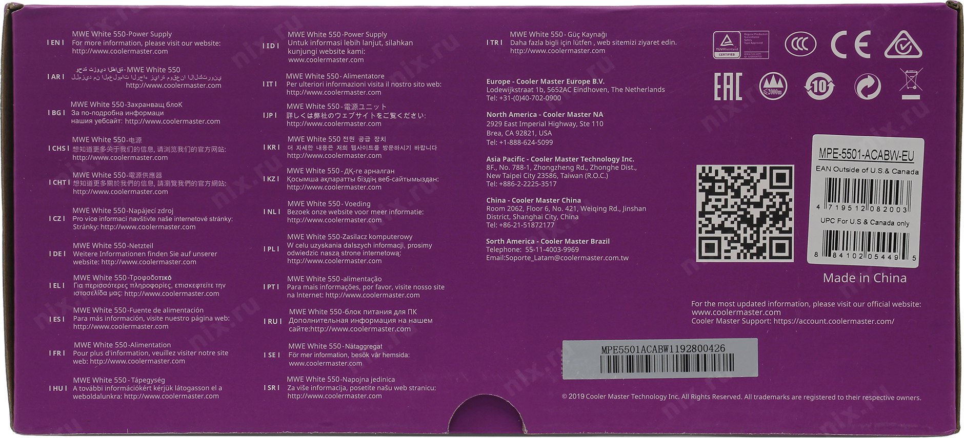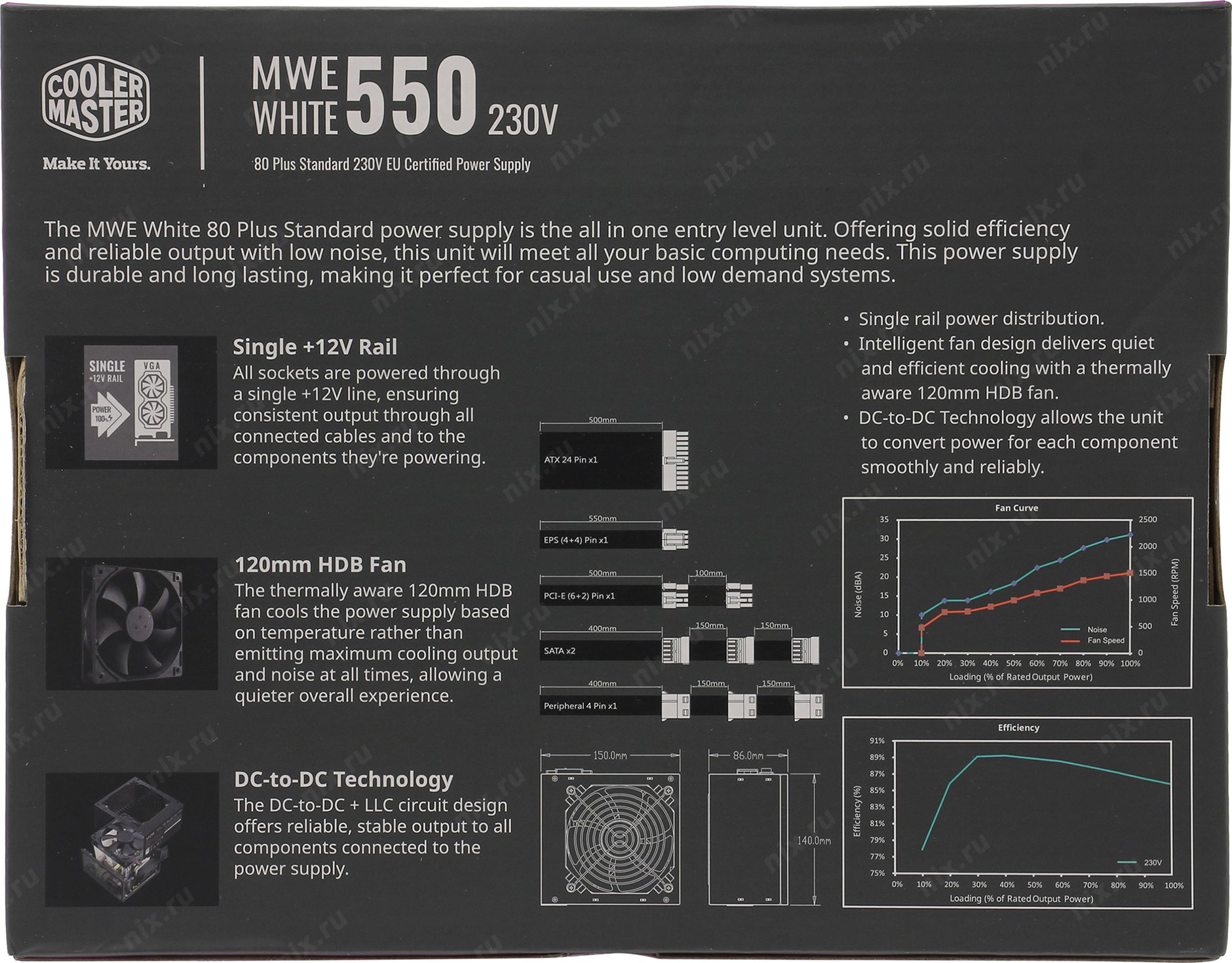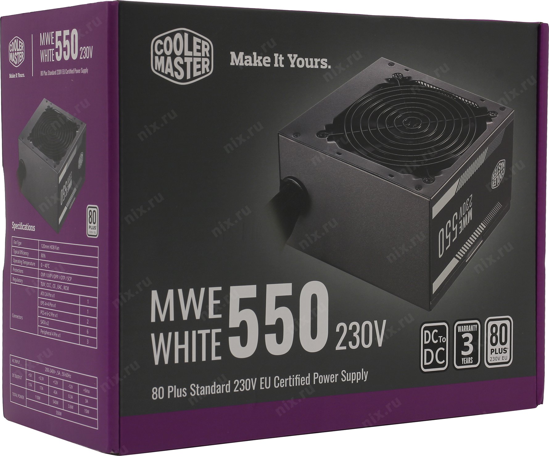 Блок питания Cooler Master ATX 550W MWE White V2 80+ 24pin APFC 120mm fan 6xSATA RTL