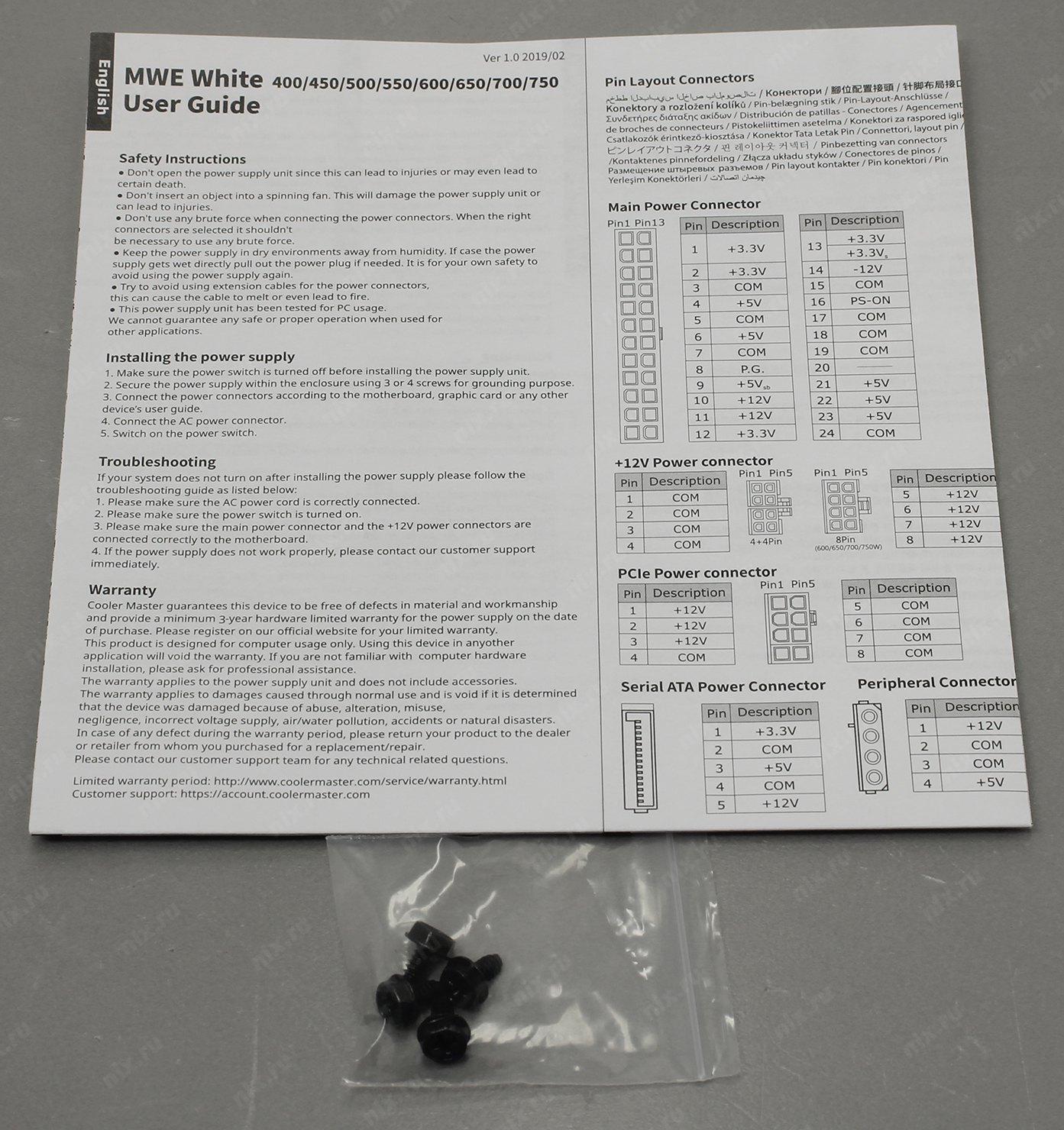 24+8 pin, 24+4 pin, 20+4 pin (разборный 24-pin коннектор. 4-pin могут отстегиваться в случае необходимости, разборный 8-pin коннектор)