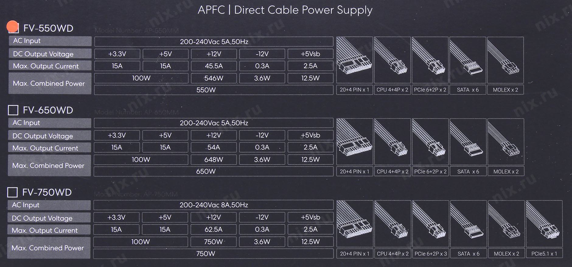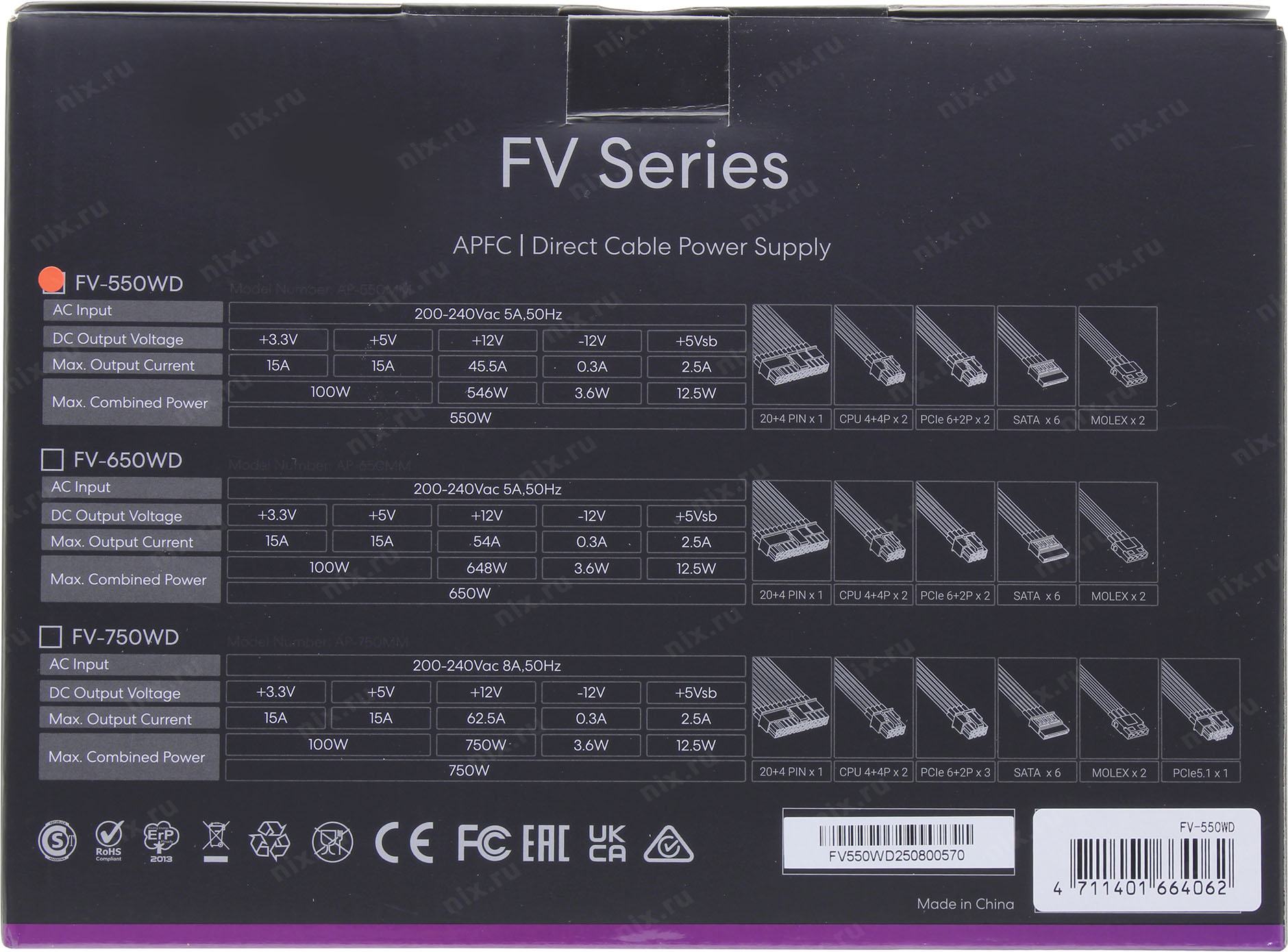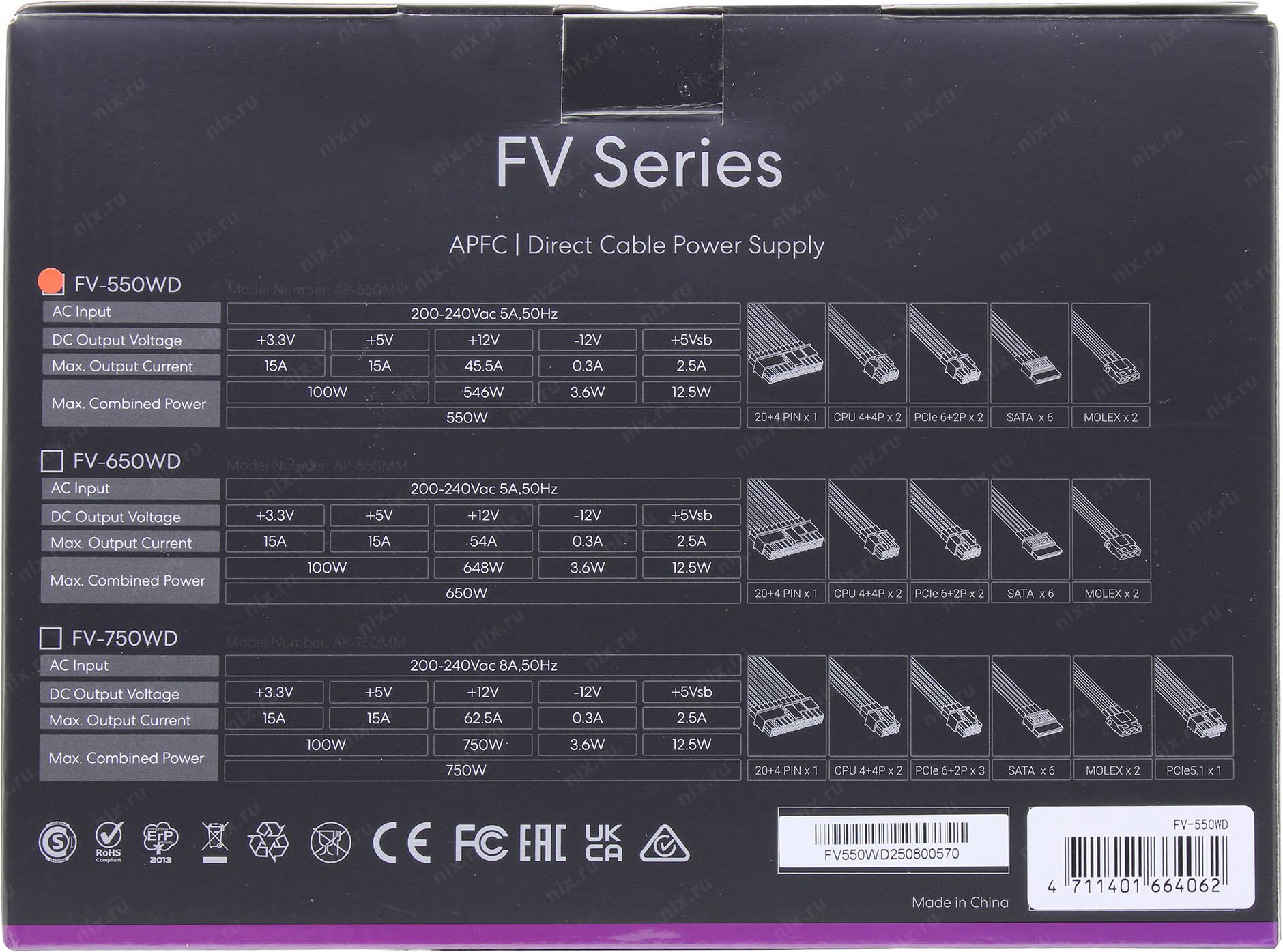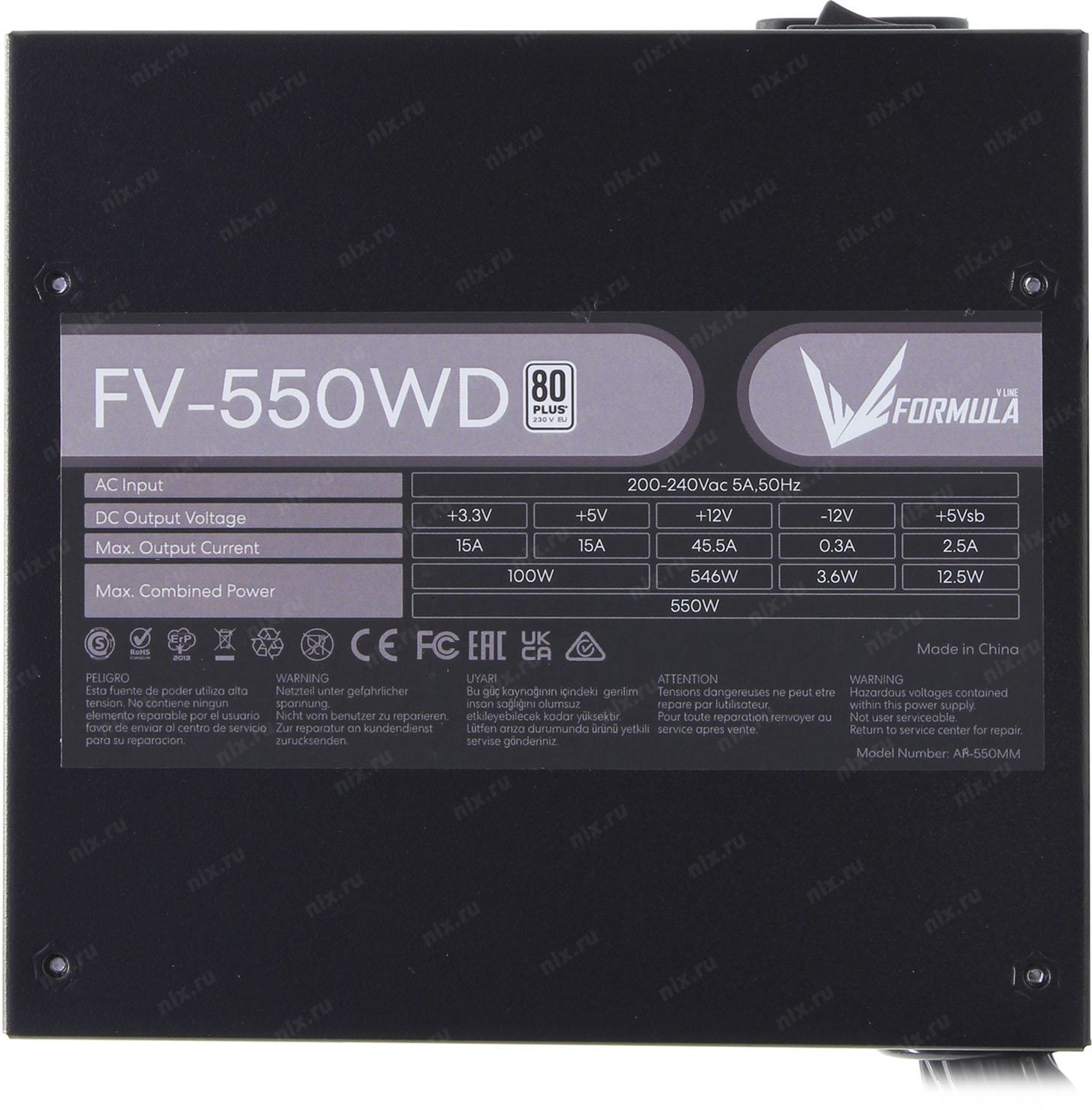 Блок питания Formula V Line FV-550WD, 550W, APFC, 80+, 12cm Fan