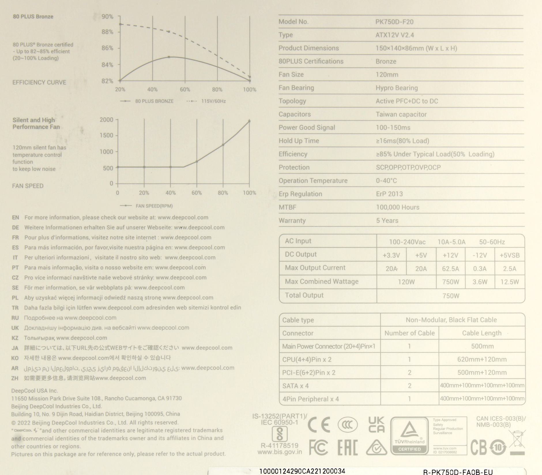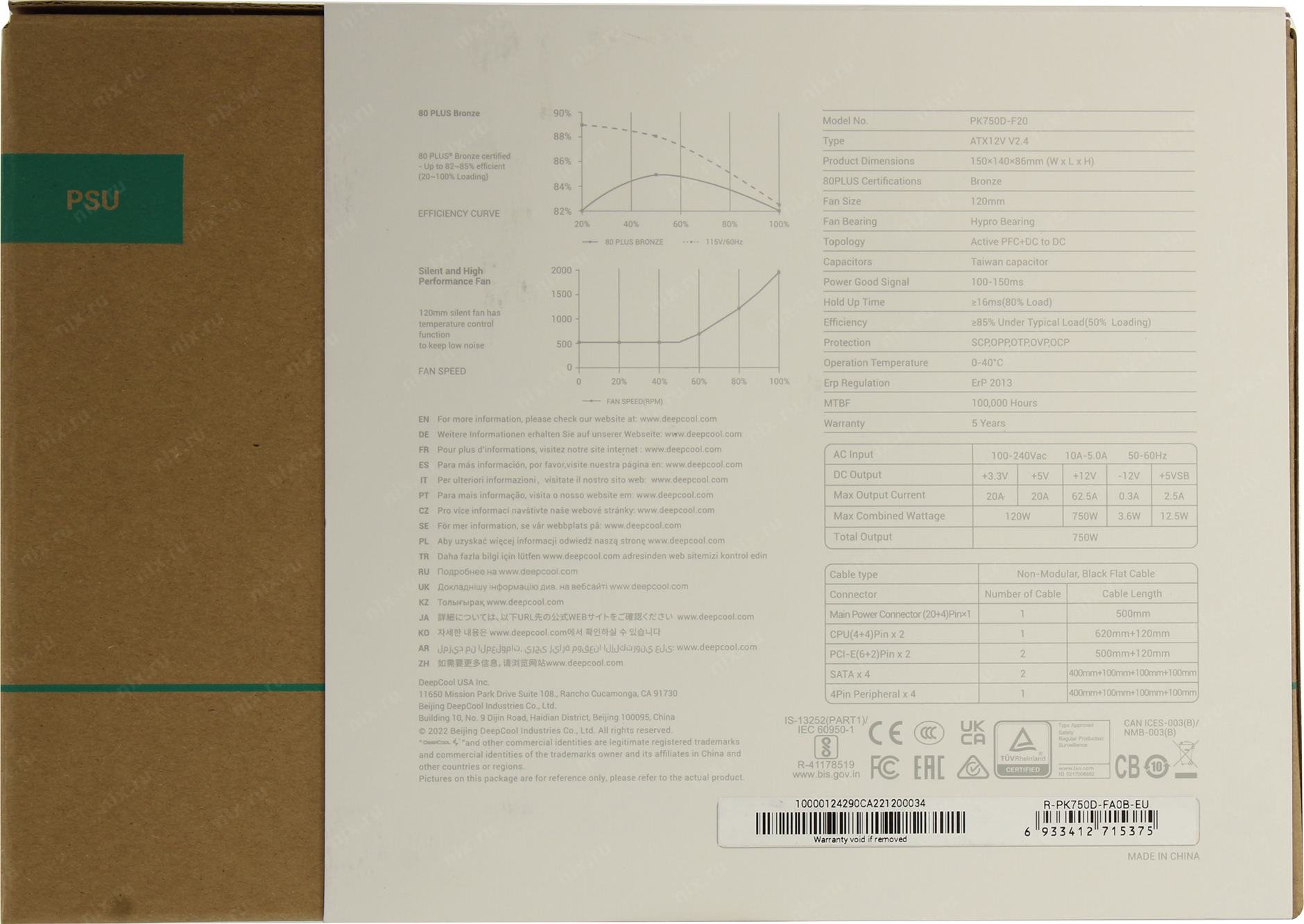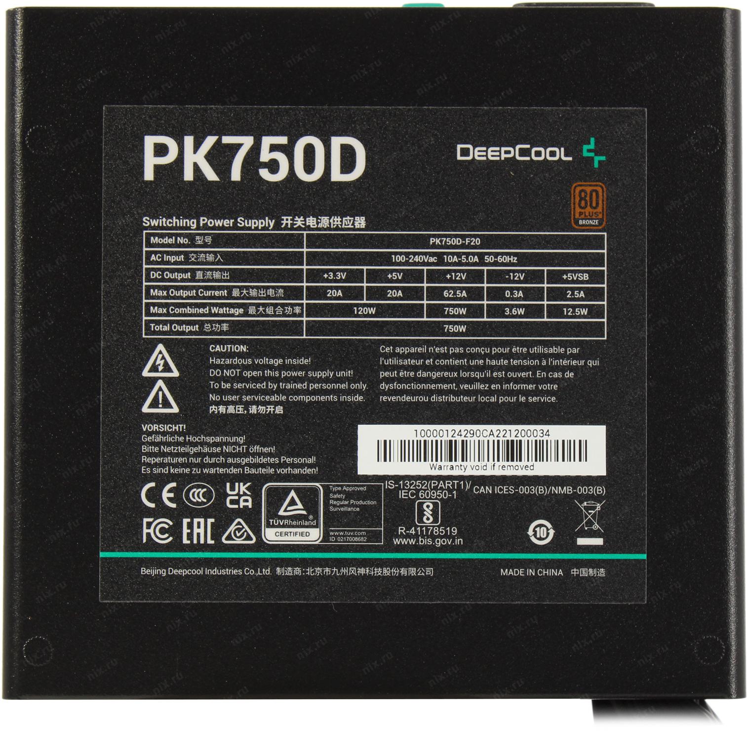 Блок питания Deepcool PK750D 750W, 80 PLUS Bronze, (R-PK750D-FA0B-EU) (715375) (6) | НИКС Екатеринбург