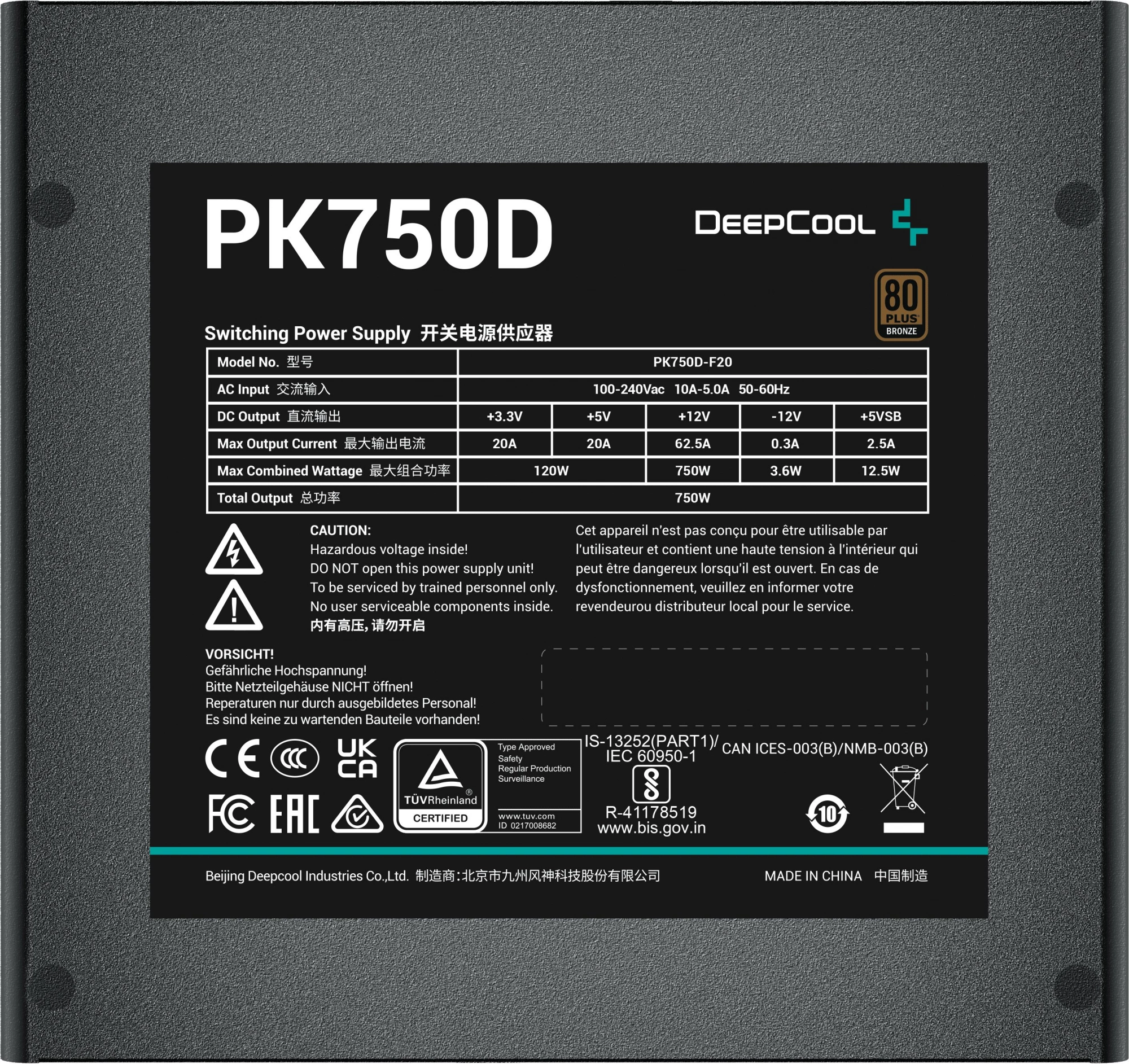 Блок питания Deepcool PK750D 750W, 80 PLUS Bronze, (R-PK750D-FA0B-EU) (715375) (6)