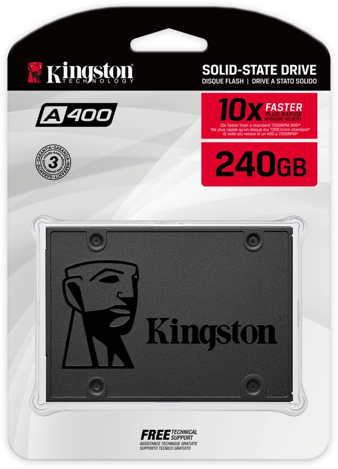 Твердотельный накопитель SSD Kingston A400 SA400S37/240G 240GB 2.5" Client SATA 6Gb/s, 500/350, MTBF 1M, TLC, 80TBW, RTL (10) (261219)