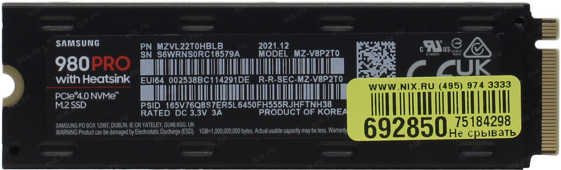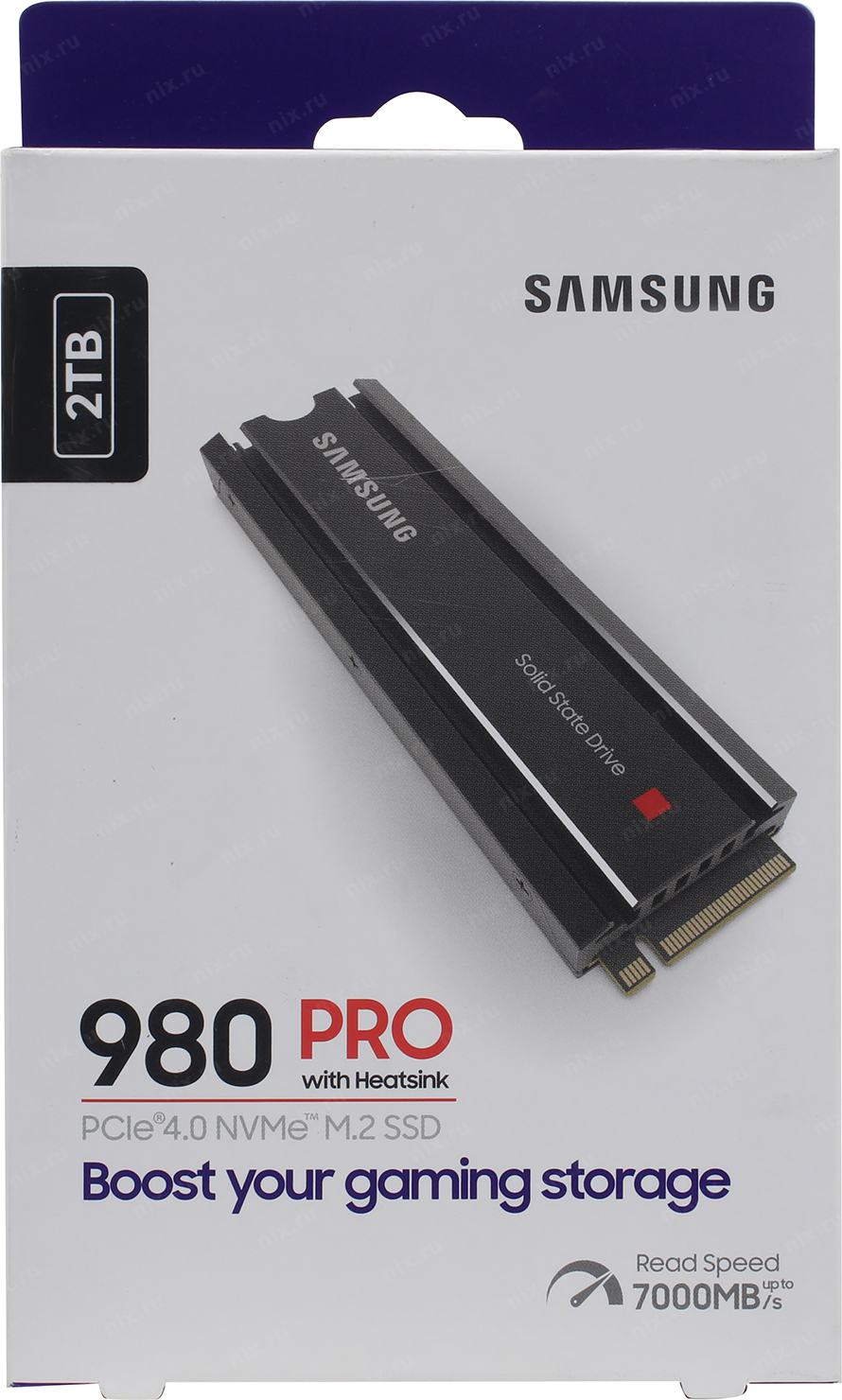 Твердотельный накопитель SSD Samsung 980 PRO Black M.2 2280 MZ-V8P2T0 2TB Client SSD PCIe Gen4x4 with NVMe, 7000/5100, IOPS 1000/1000K, MTBF 1.5M, 3D NAND TLC, 2048MB, 1200TBW, 0,33DWPD, Heat Sink, RTL (837690) MZ-V8P2T0CW | НИКС Екатеринбург