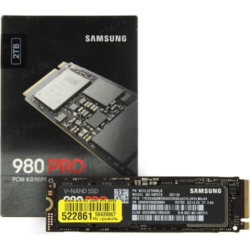 Накопитель SSD накопитель Samsung 980 PRO MZ-V8P2T0B/AM 2ТБ, M.2 2280, PCIe 4.0 x4, NVMe, M.2, rtl