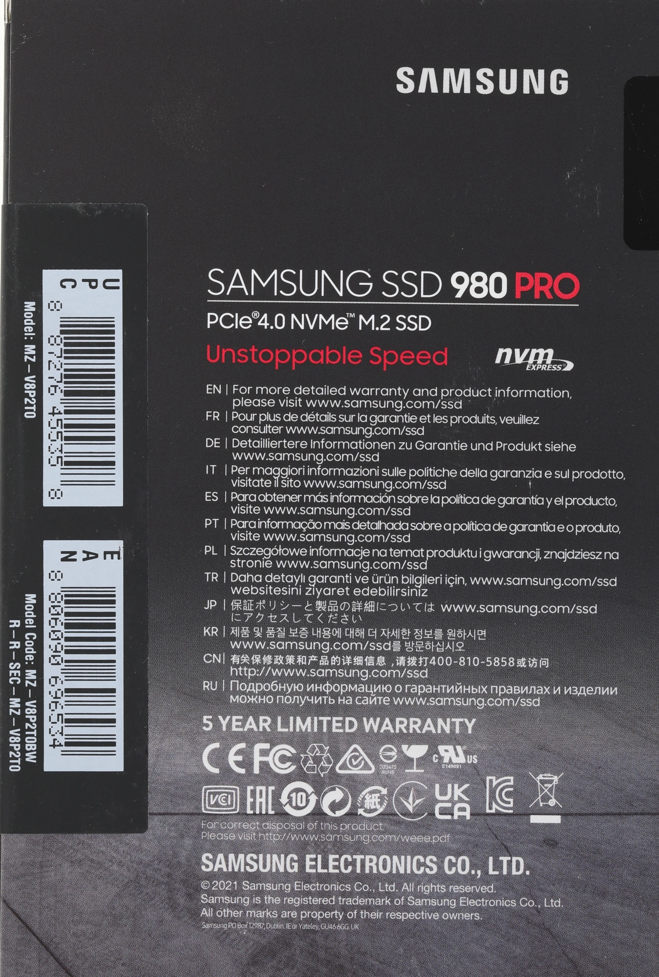 Накопитель SSD накопитель Samsung 980 PRO MZ-V8P2T0B/AM 2ТБ, M.2 2280, PCIe 4.0 x4, NVMe, M.2, rtl | НИКС Екатеринбург