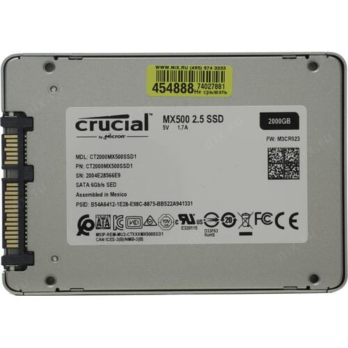 Накопитель SSD Crucial SATA III 2Tb CT2000MX500SSD1 MX500 2.5"