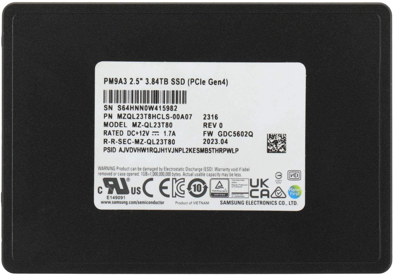 Накопитель Samsung SSD 3840Gb PM9A3 NVMe MZQL23T8HCLS-00A07