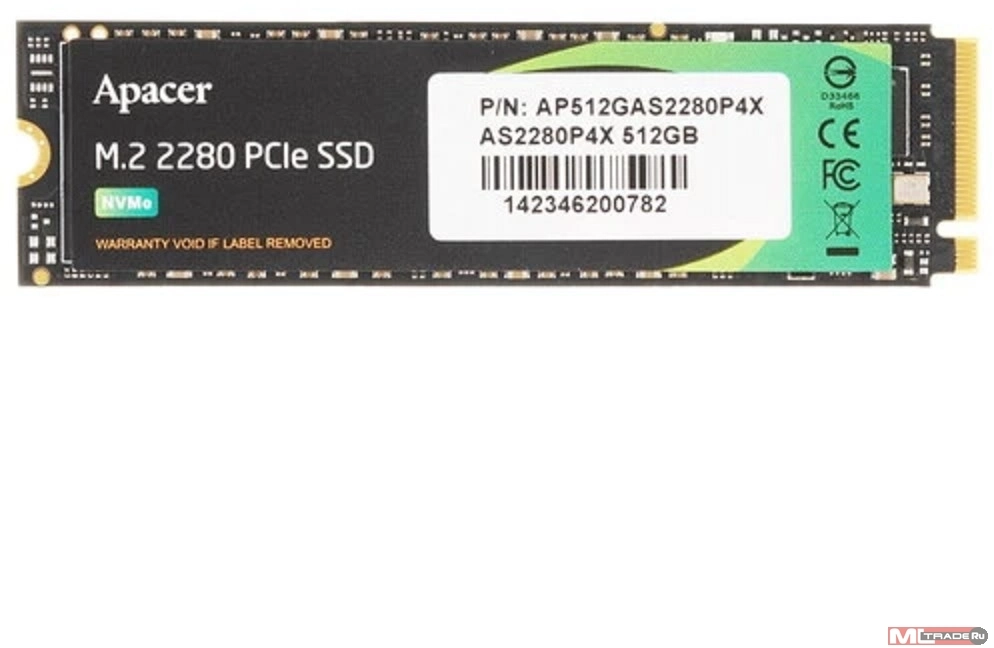 Твердотельный накопитель SSD Apacer AS2280 512GB M.2 2280 AP512GAS2280P4X-1 Client PCIe Gen3x4 with NVMe, 2100/1500, IOPS 300/420K, MTBF 1.5M, 3D NAND, DRAM less, 350TBW, 0,62DWPD, RTL