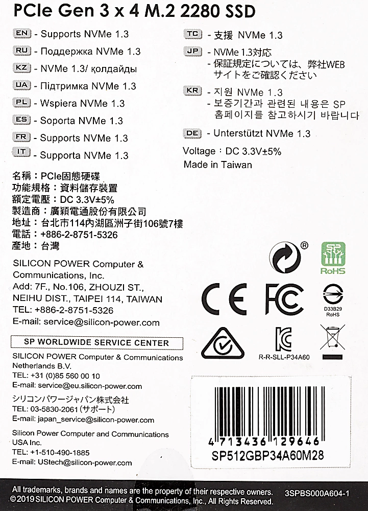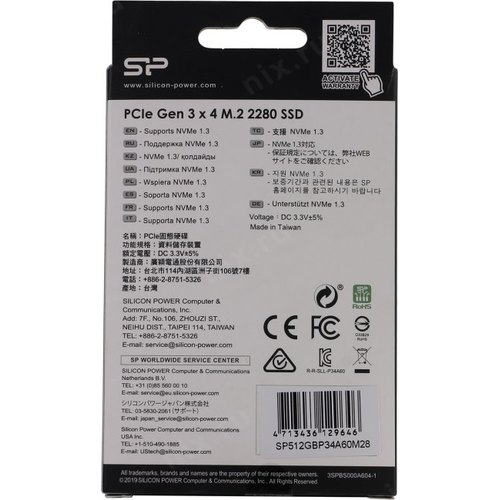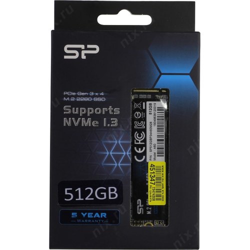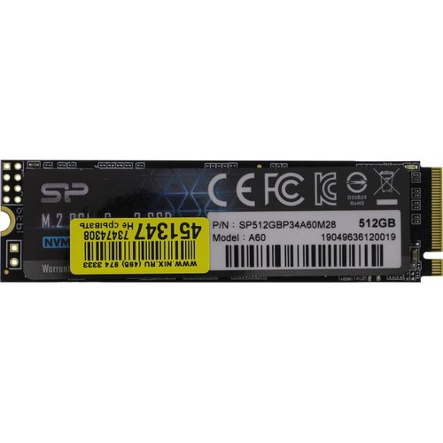 Накопитель Silicon Power SSD 512Gb A60 SP512GBP34A60M28, M.2 2280, PCI-E x4, NVMe