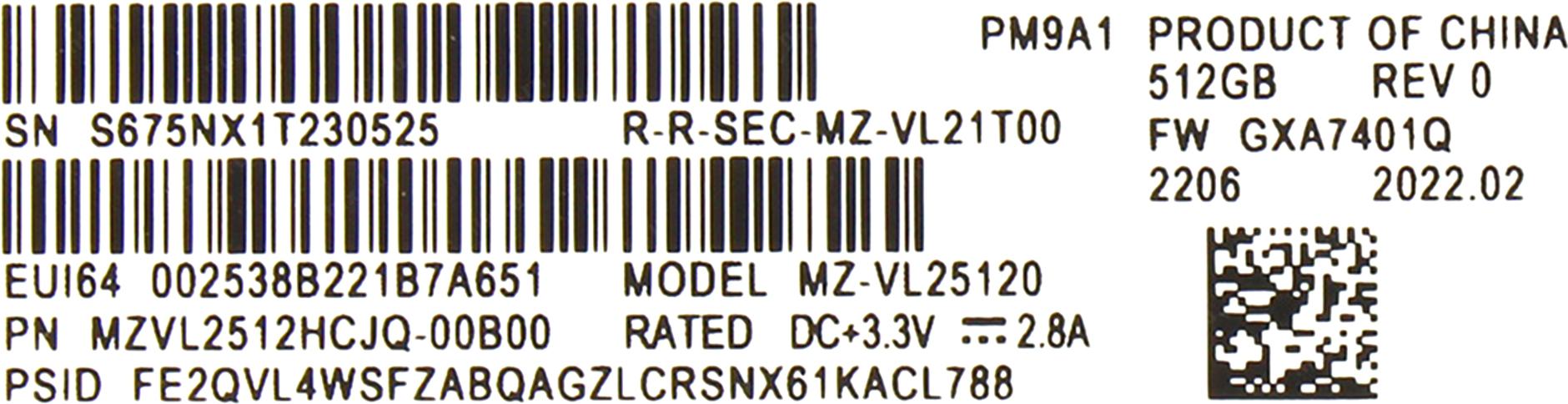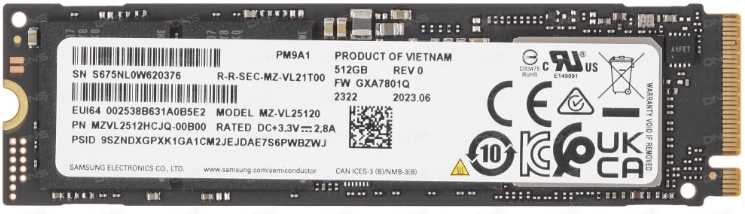 Твердотельный накопитель SSD 512GB M.2 Samsung PM9A1 MZVL2512HCJQ-00B07