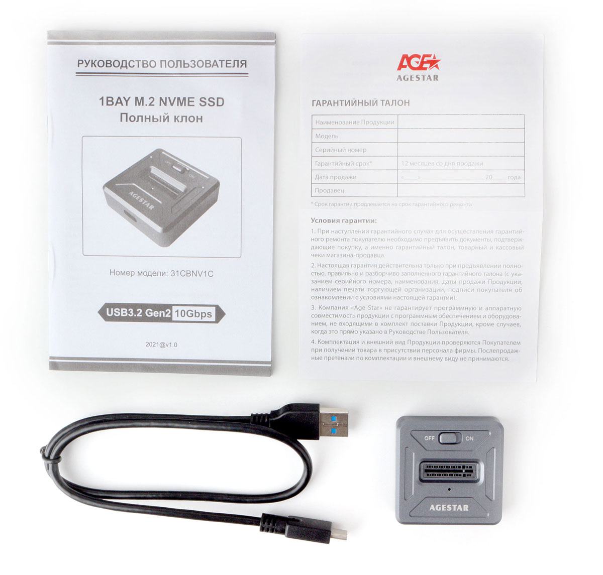 Контейнер для HDD AgeStar 31CBNV1C USB 3.1 SSD M.2 NVME, алюминий, серый, (GRAY)