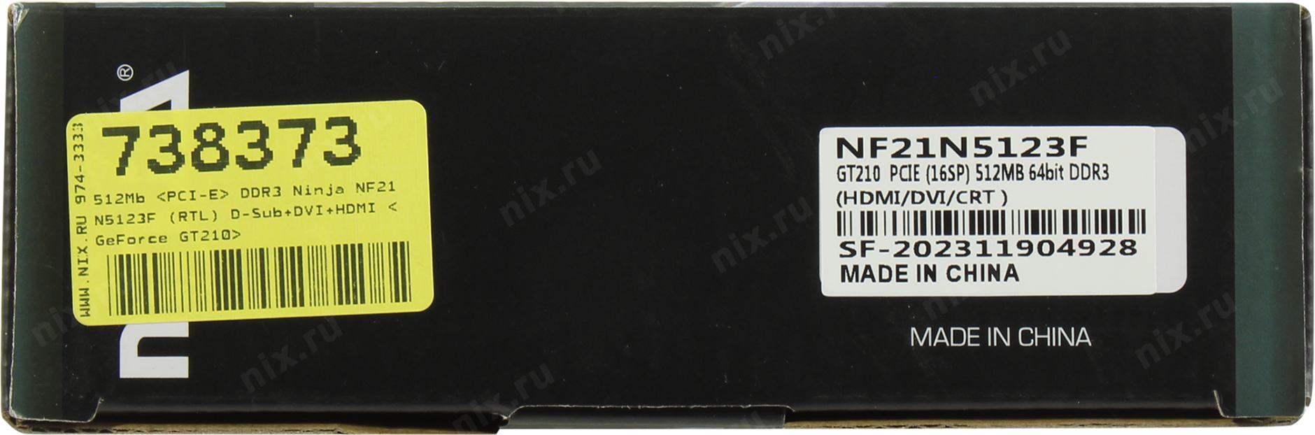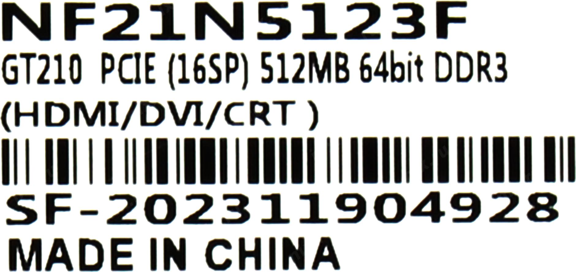 Видеокарта Sinotex Ninja GT210 512M 64bit DDR3 DVI HDMI CRT PCIE [NF21N5123F]