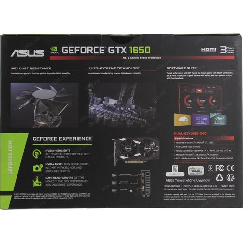 Видеокарта Asus PCI-E DUAL-GTX1650-O4G NVIDIA GeForce GTX 1650 4096Mb 128 GDDR5 1485/8002 DVIx1 HDMIx1 DPx1 HDCP Ret
