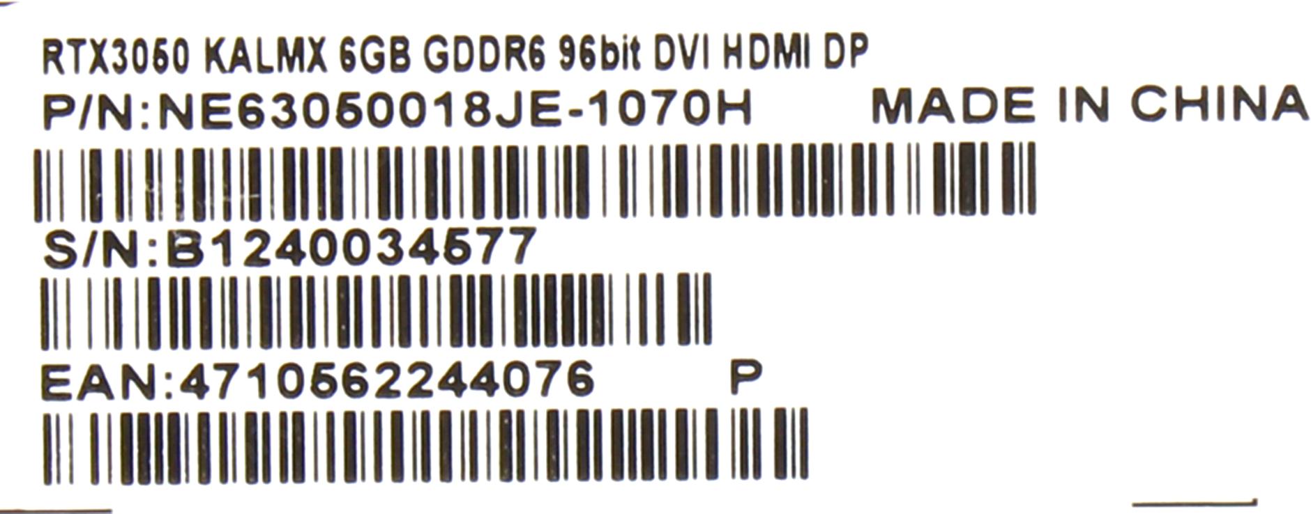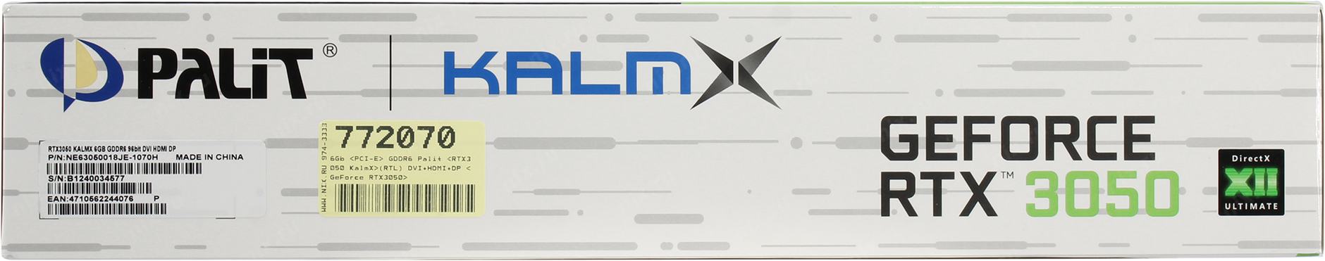 Видеокарта PALIT RTX3050 KALMX 6Gb 96bit GDDR6 1042/14000 DVIx1 HDMIx1 DPx1 HDCP Ret (NE63050018JE-1070H)