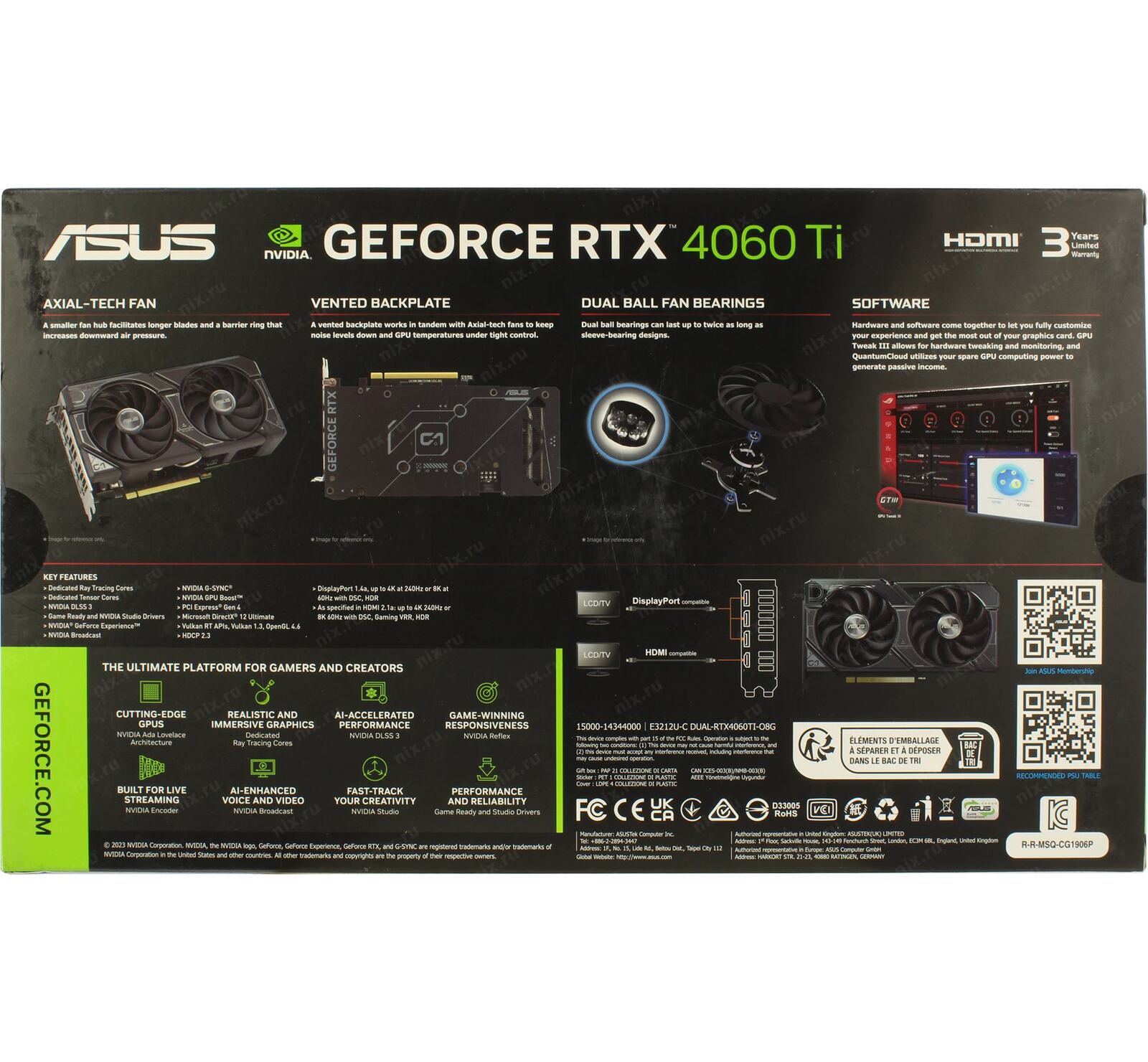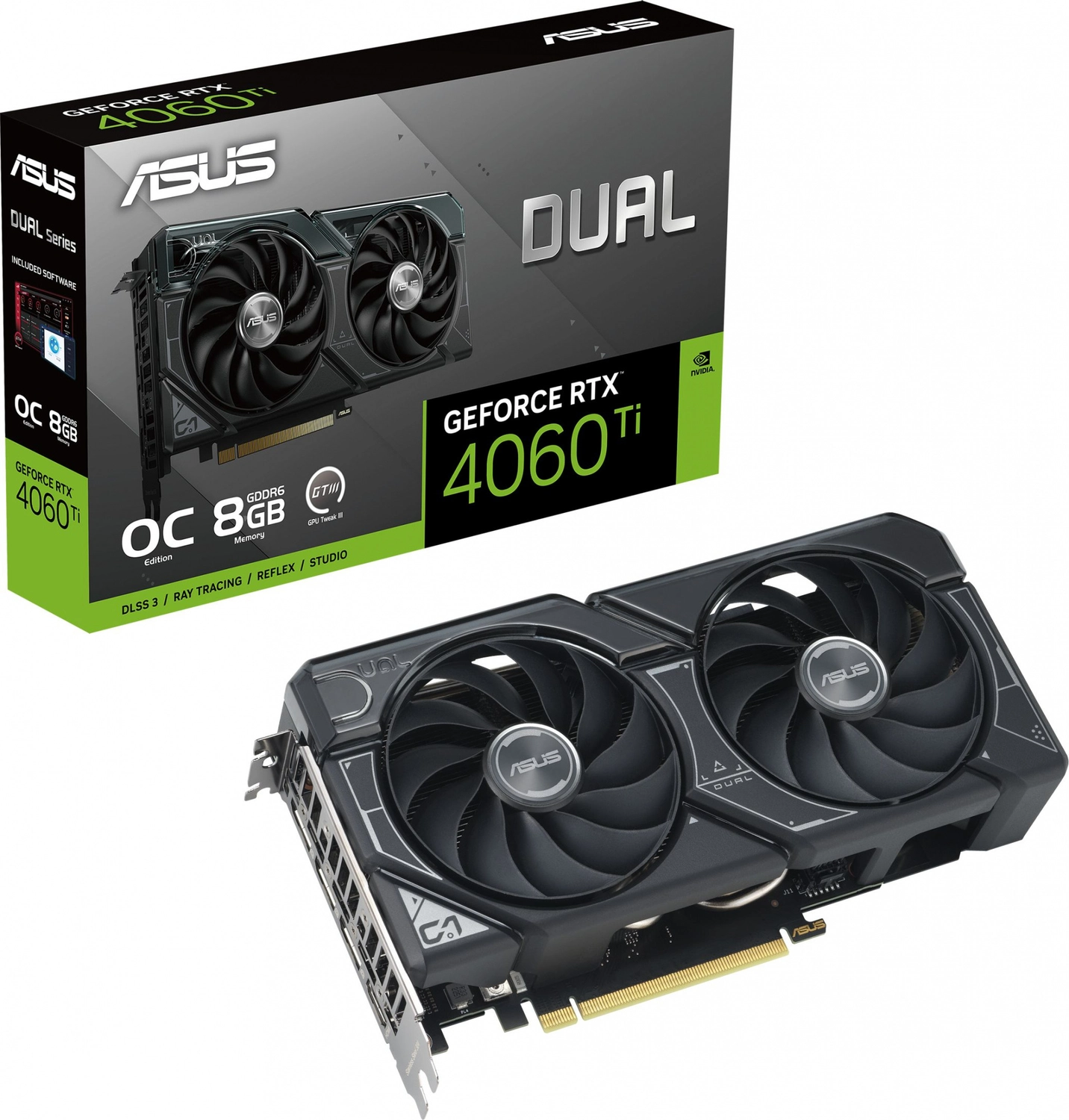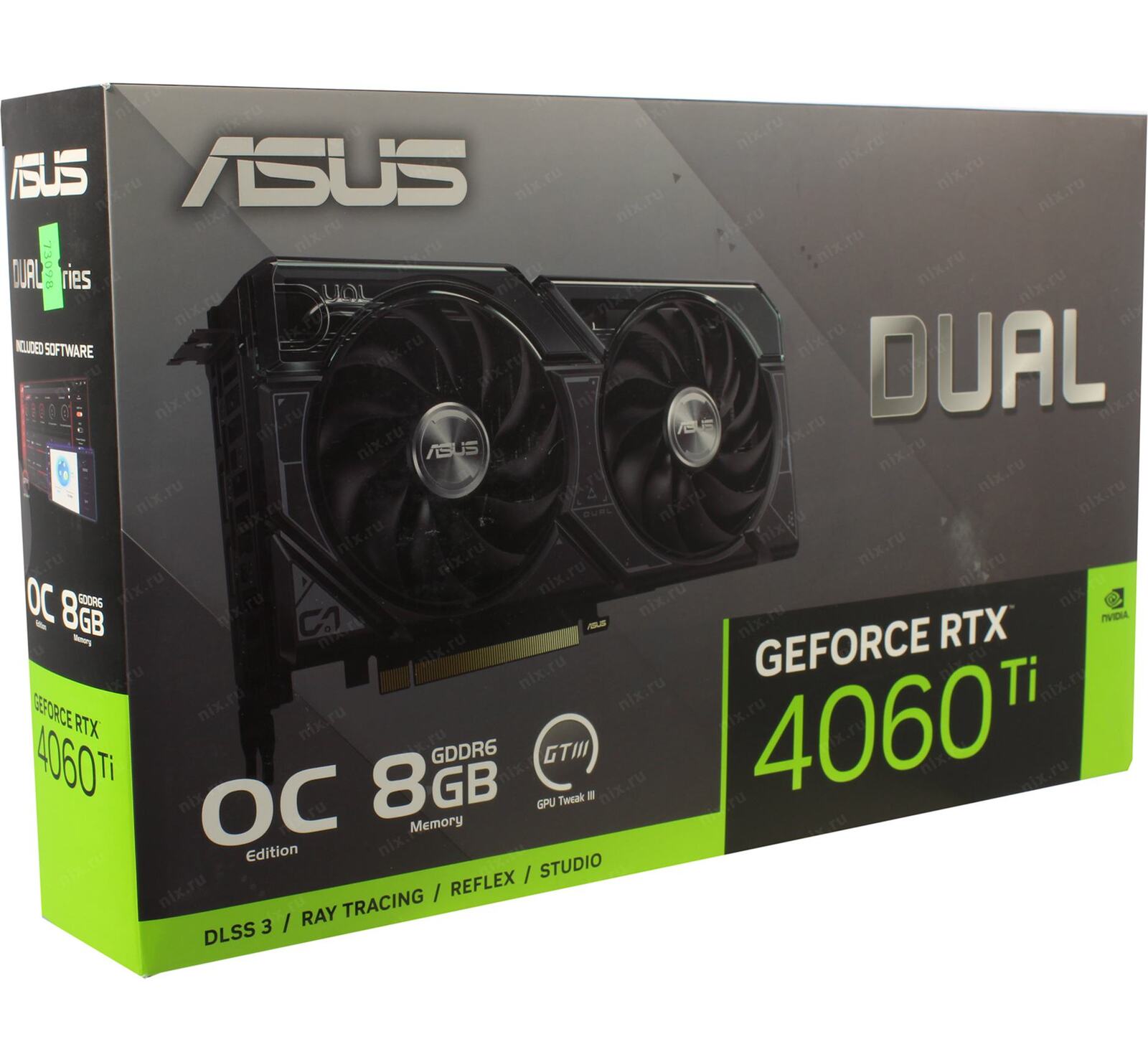 Видеокарта ASUS RTX4060Ti DUAL OC 8GB GDDR6 128bit 3xDP HDMI 2FAN [DUAL-RTX4060TI-O8G] 90YV0J40-M0NA00