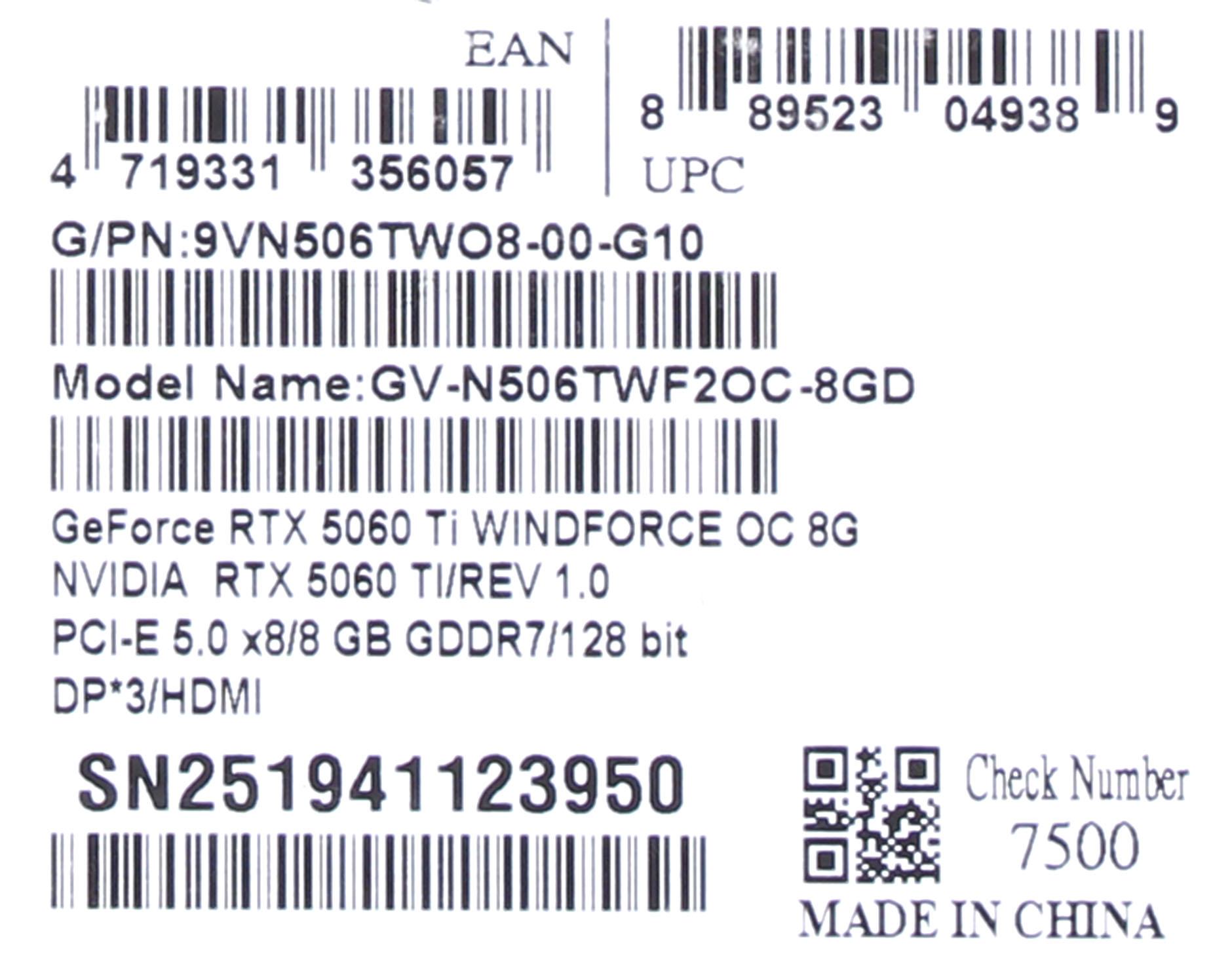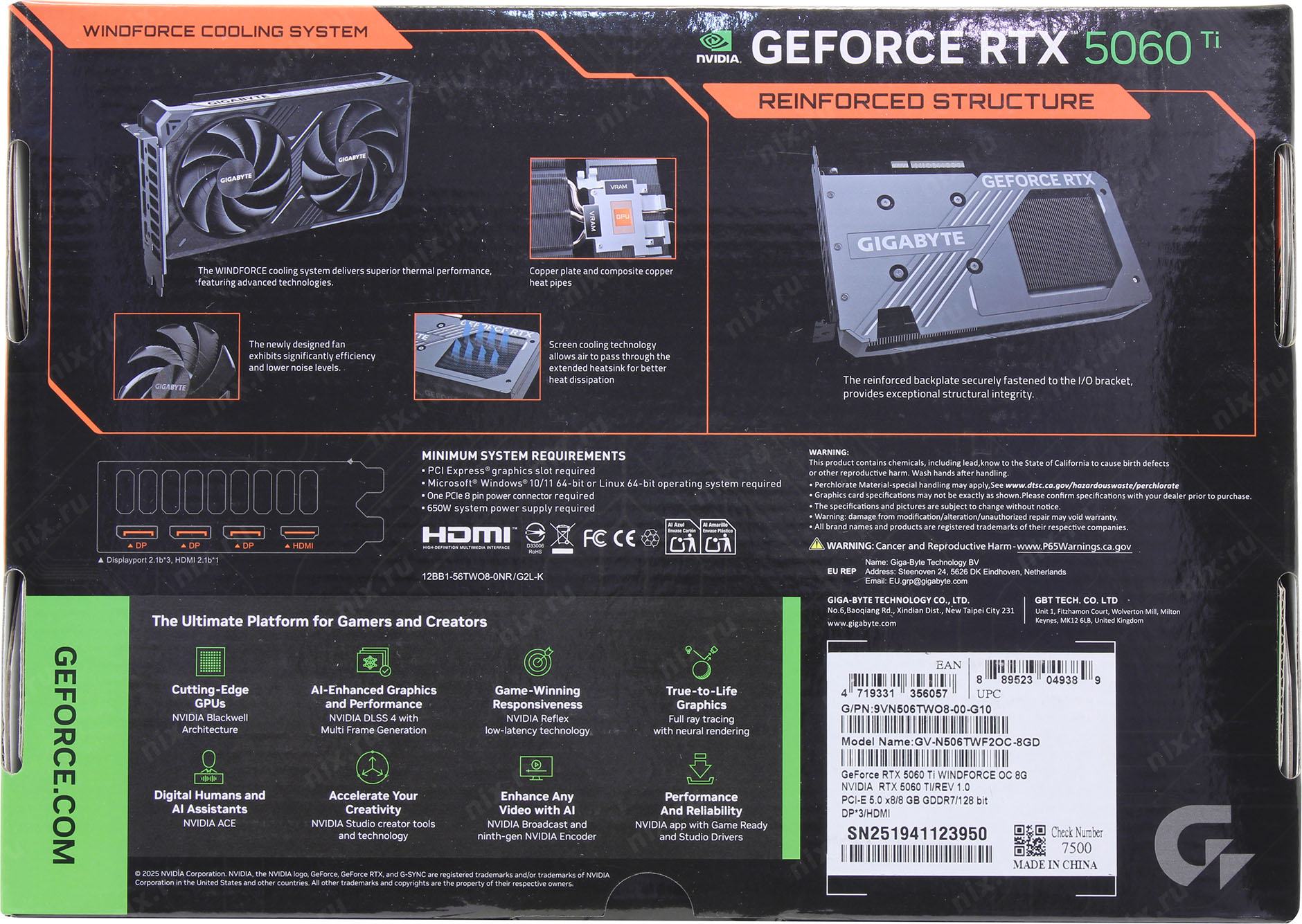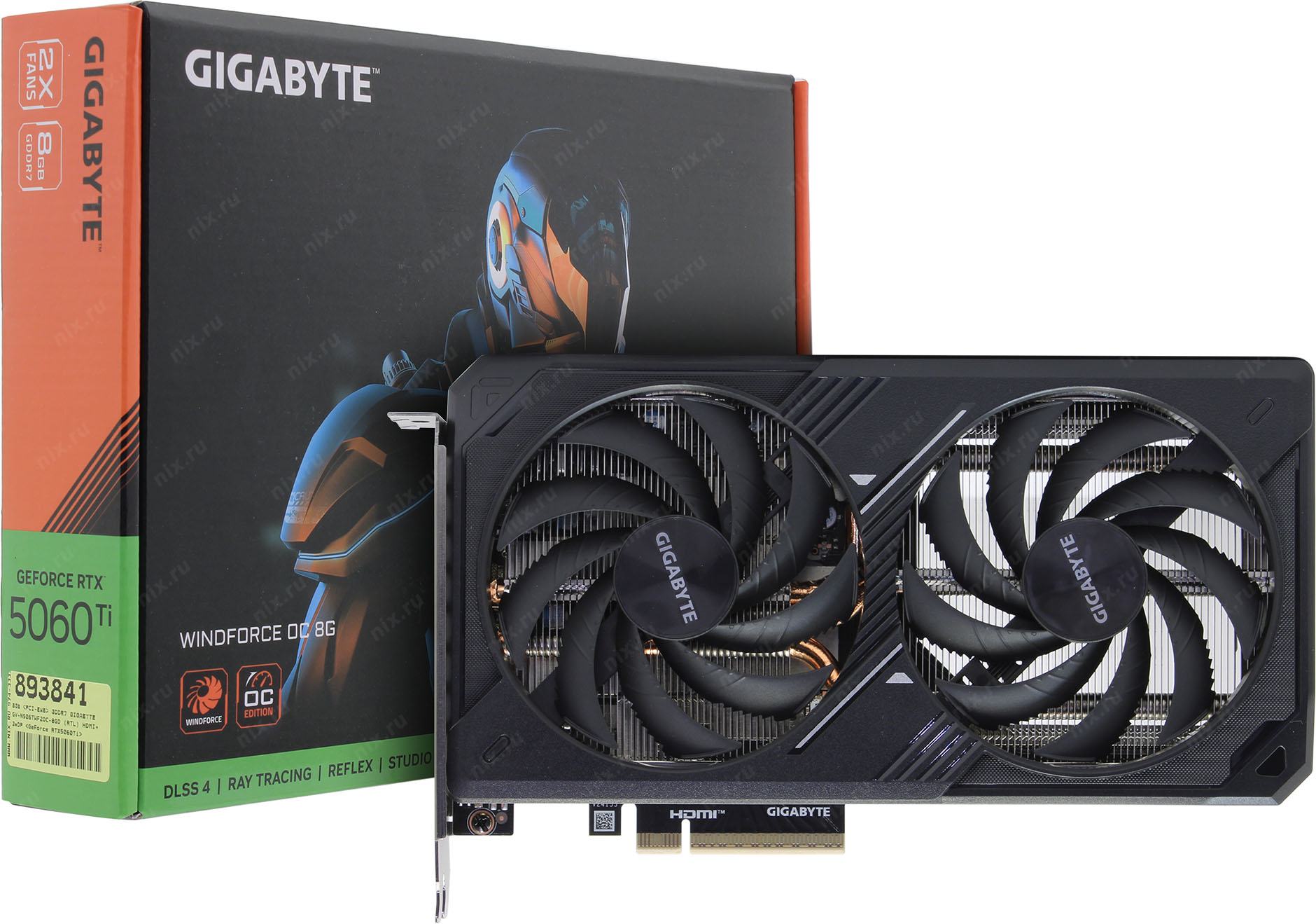 Видеокарта Gigabyte PCI-E 5.0 GV-N506TWF2OC-8GD 1.0 NVIDIA GeForce RTX 5060TI 8Gb 128bit GDDR7 2572/28000 HDMIx1 DPx3 HDCP Ret