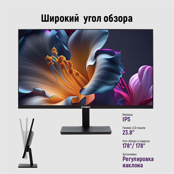 Монитор 23.8'' IRBIS SMARTVIEW 24 LED Monitor 1920x1080, 16:9, IPS, 250 cd/m2, 1000:1, 3ms, 178°/178°, VGA, HDMI, DP, USB Audio output 100Hz Speak Tilt VESA для mini ПК внутр. Бп Black 3y (China) <ISM24FIDVesa>