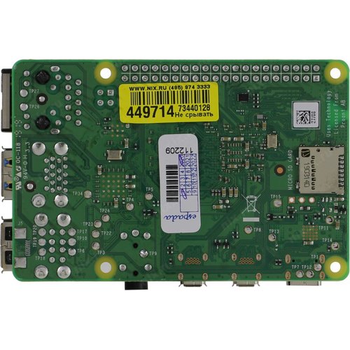 2 x USB 3.0, 2 x USB 2.0, 2 x microHDMI, RJ-45, AV-out, GPIO, разъем для камеры, USB Type C (для зарядки)