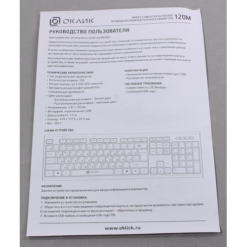 Клавиатура Оклик 120M черный USB (1083044) OKLICK