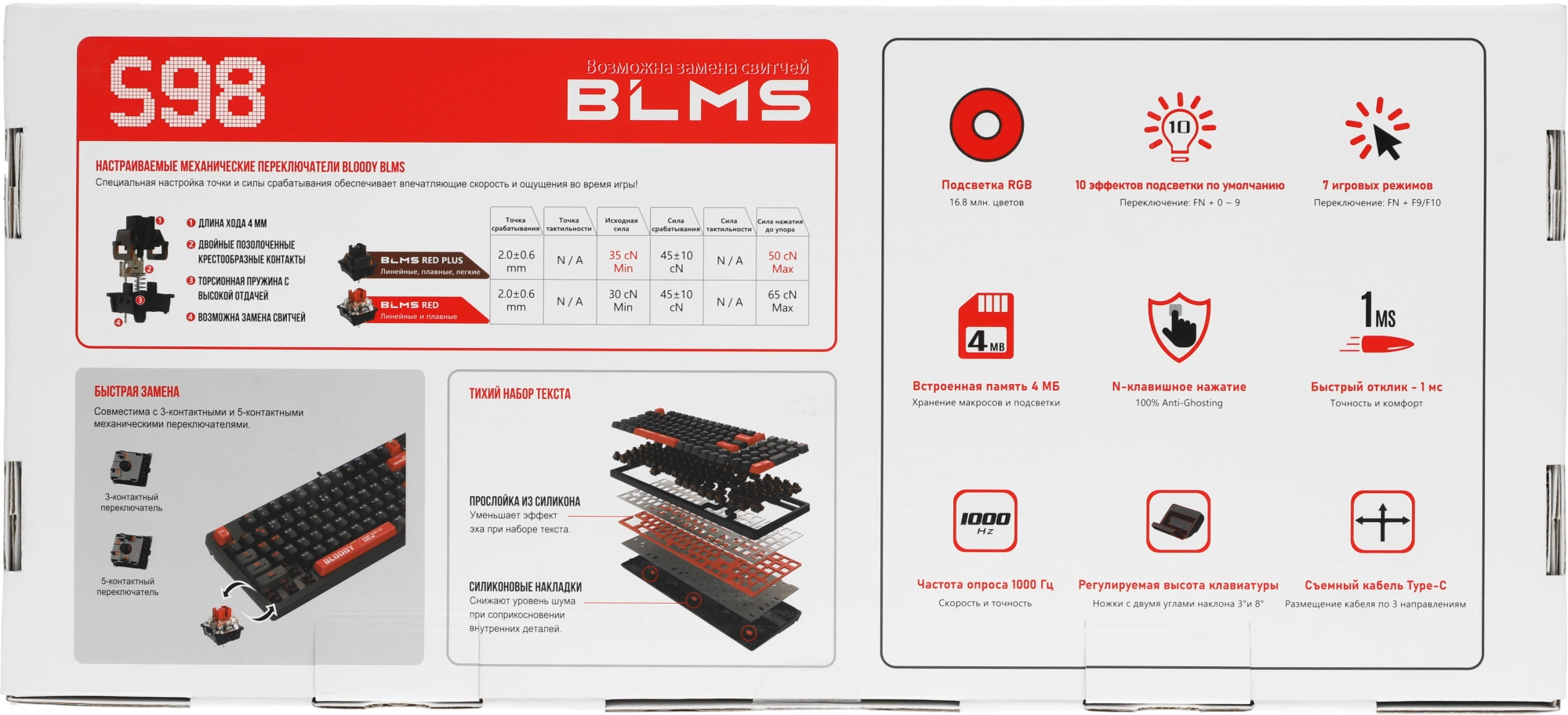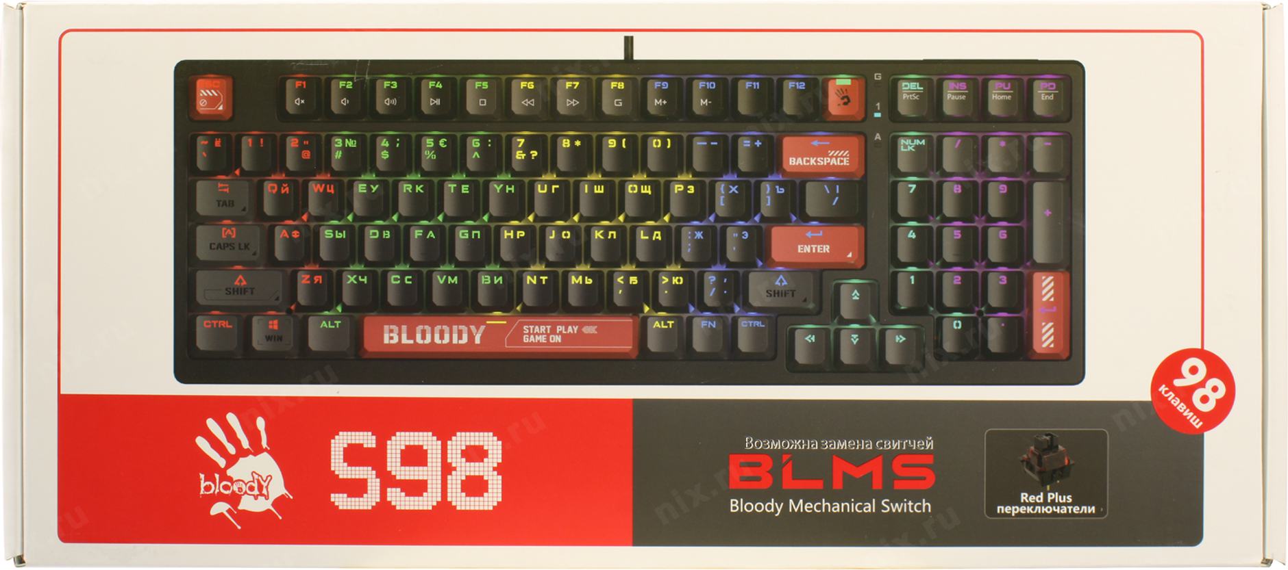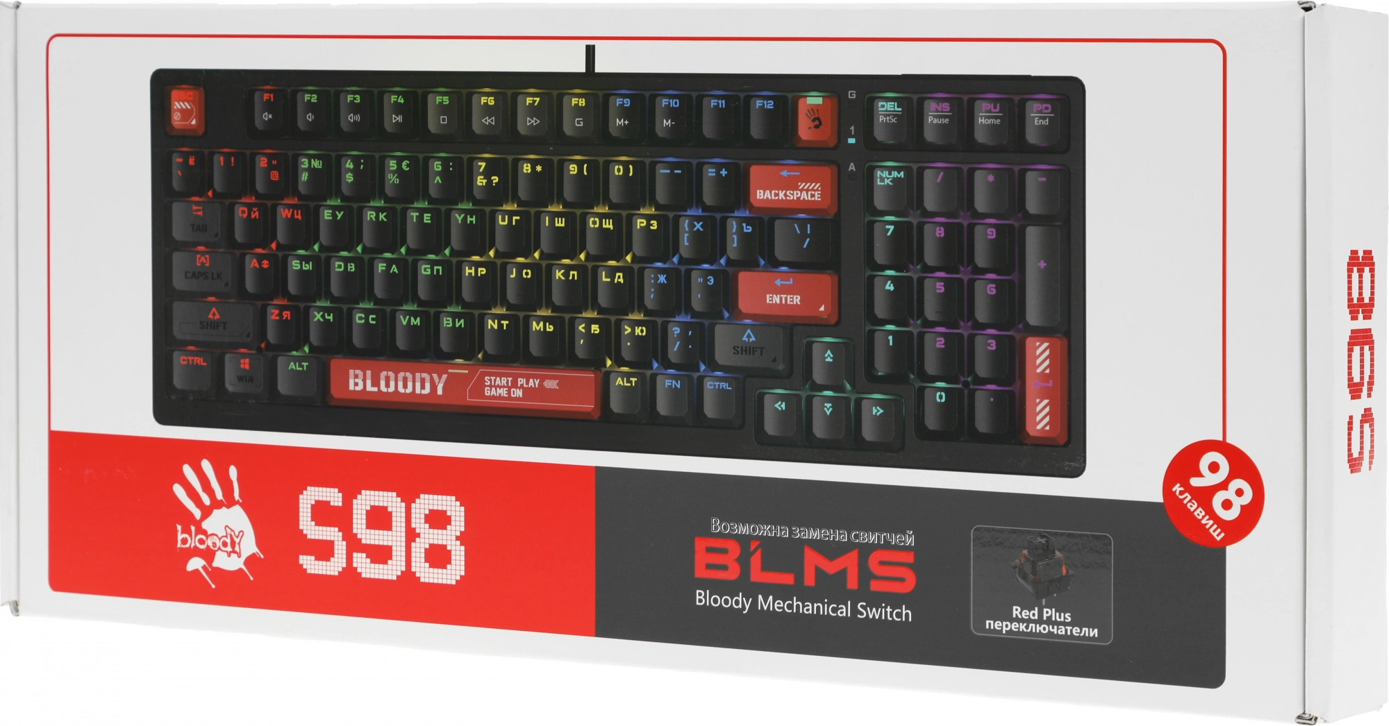 Клавиатура проводная A4Tech Bloody S98 black (механическая, USB, for gamer, LED) (S98 RED) [S98RED]