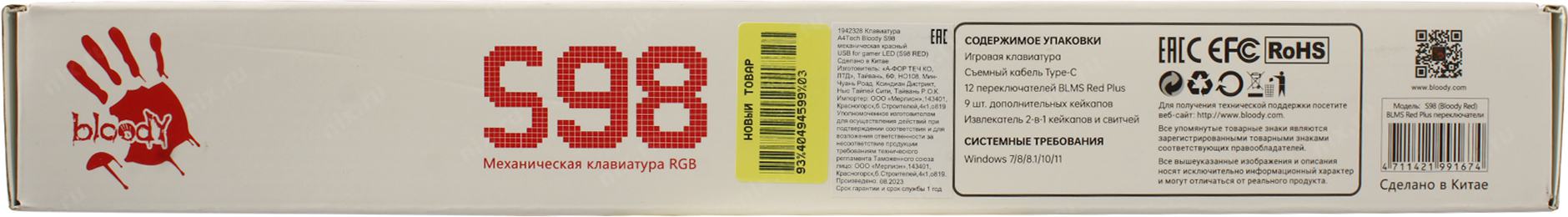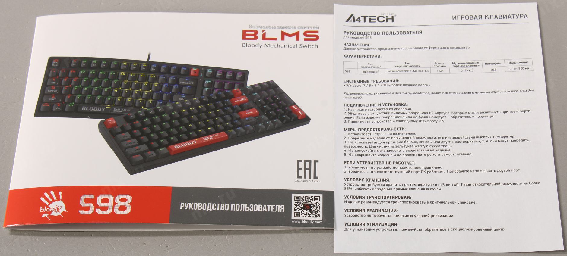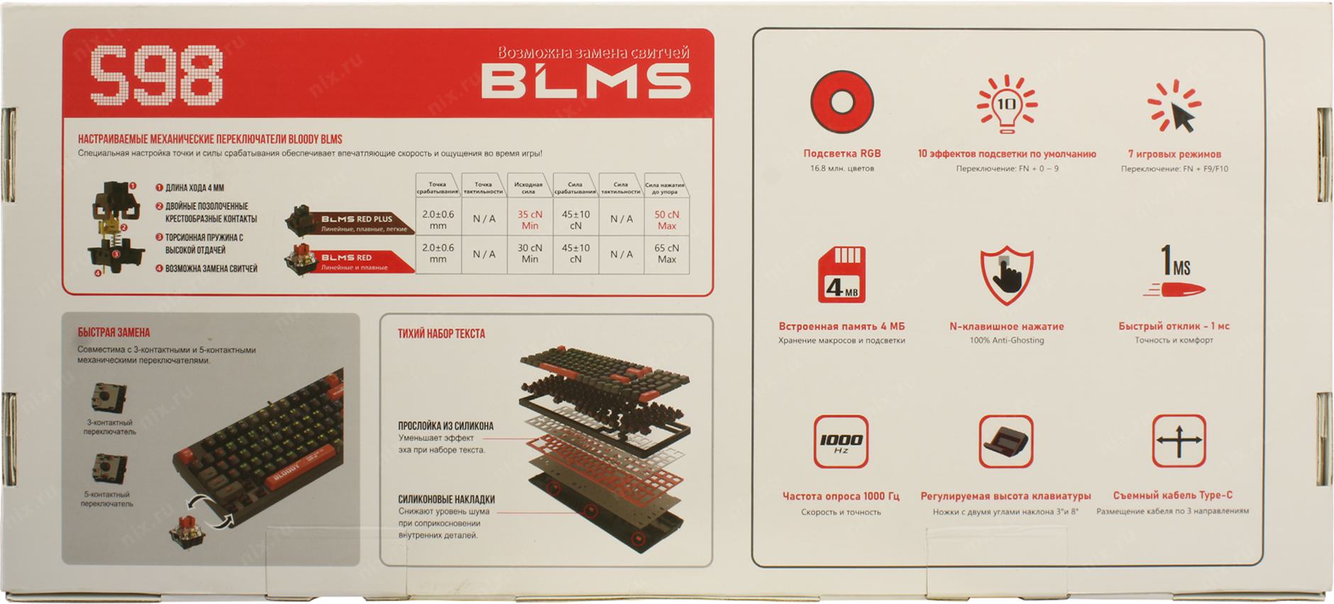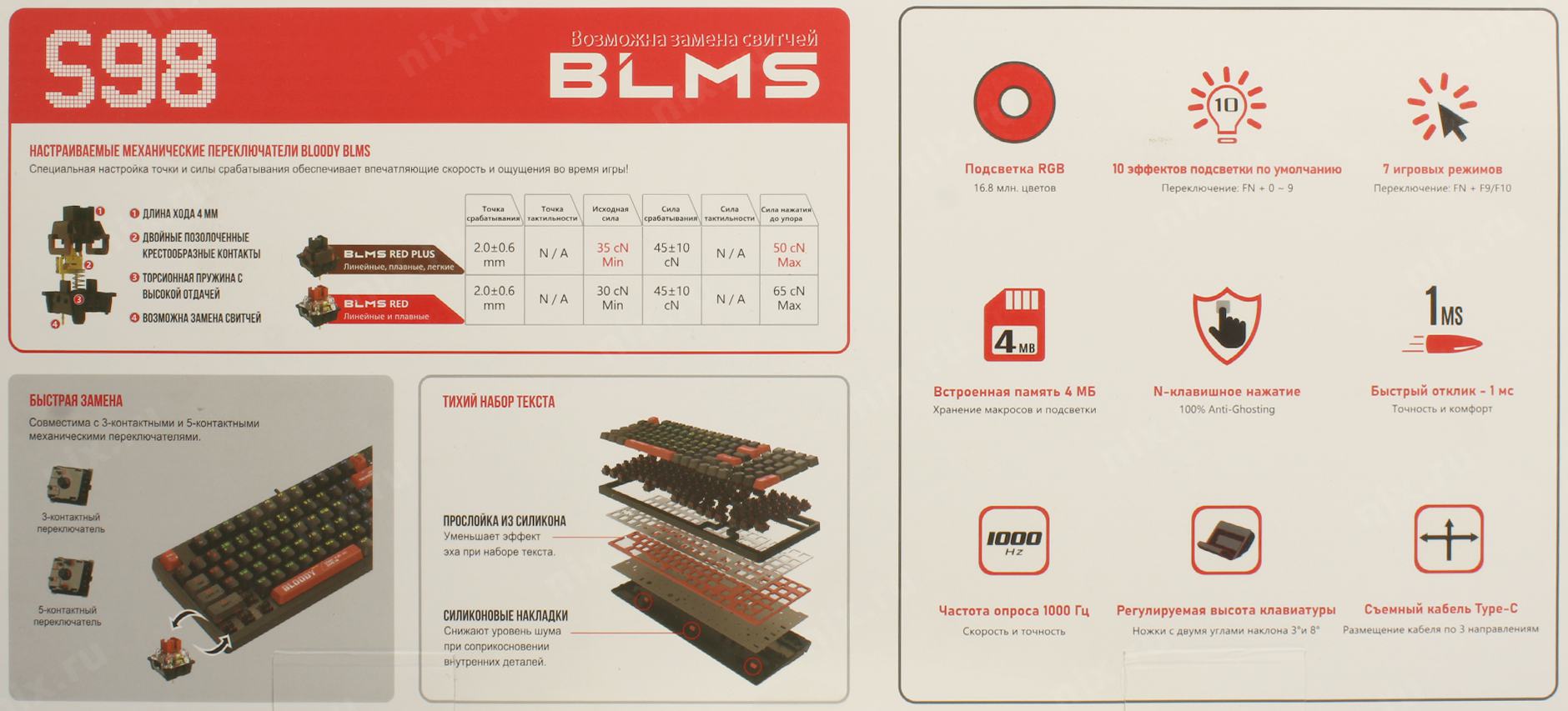 Клавиатура проводная A4Tech Bloody S98 black (механическая, USB, for gamer, LED) (S98 RED) [S98RED]