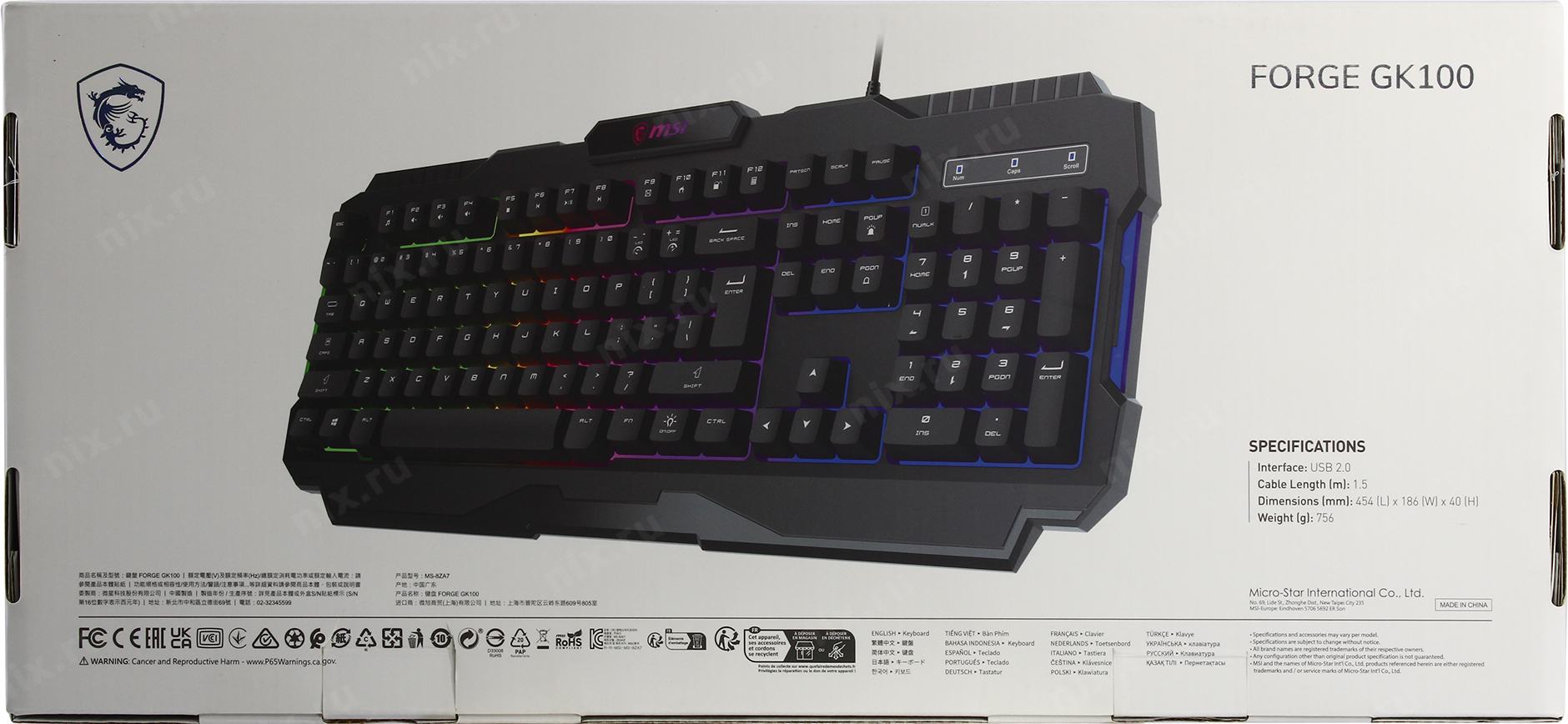 Клавиатура MSI FORGE GK100 RU черный USB for gamer LED (S11-04RU252-HH9) кабель 1.5м | НИКС Екатеринбург