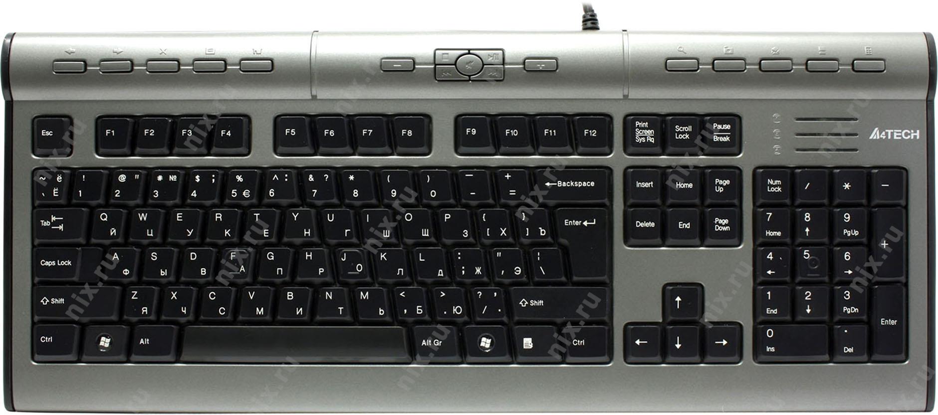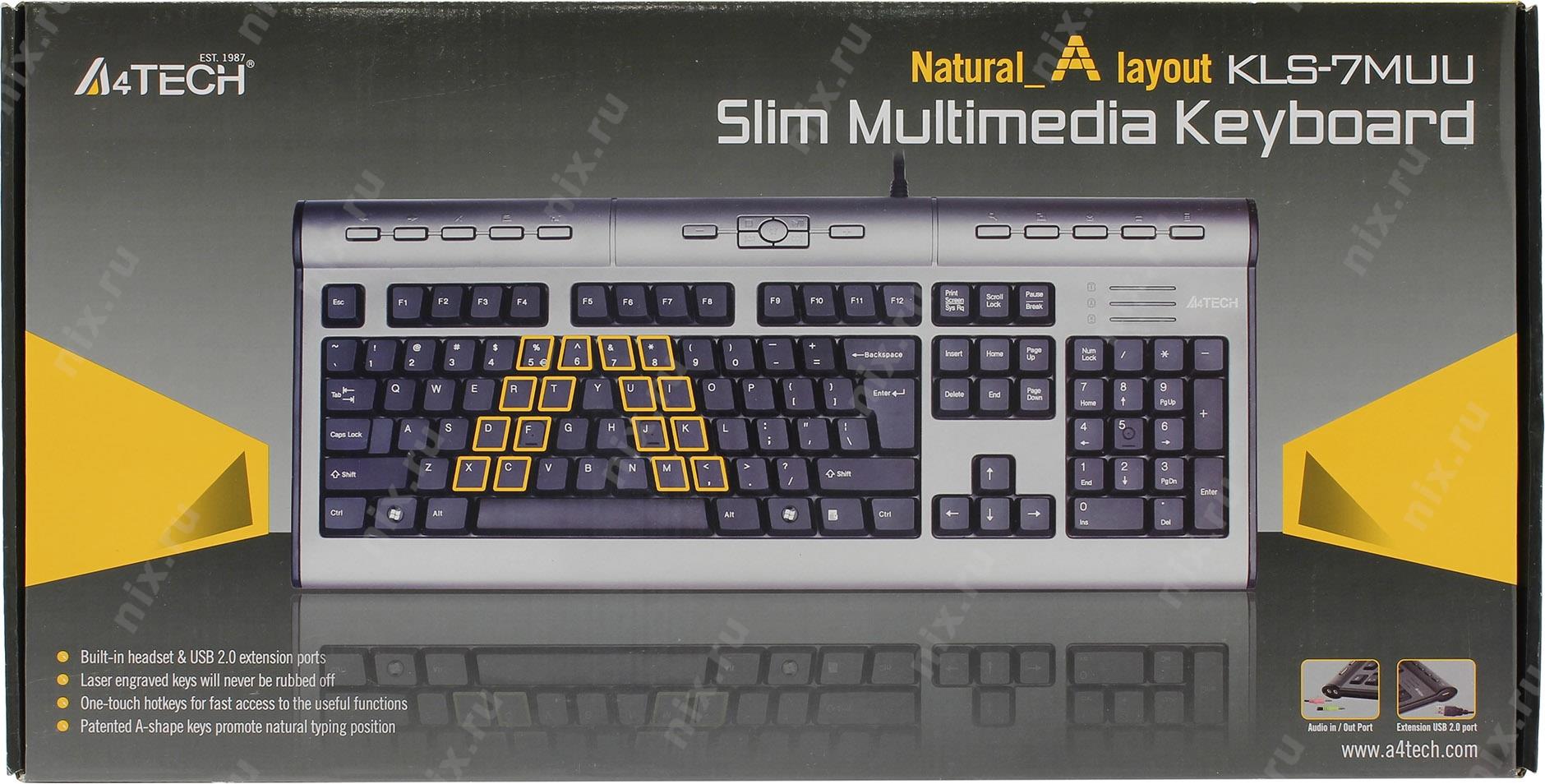 Клавиатура A4Tech KLS-7MUU серебристый/черный USB slim Multimedia (KLS-7MUU USB) кабель 1.5м