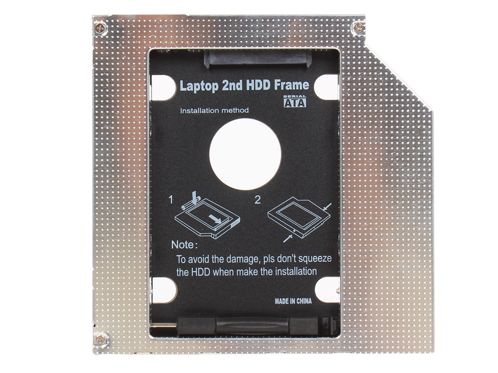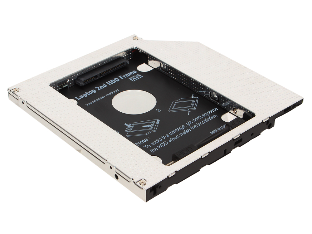 Переходник, позволяющий установить HDD формата 2.5" вместо оптического привода (Slim - высотой 9.5 мм). Такие устройства также называют Optibay, HDD Caddy, адаптер hdd вместо dvd