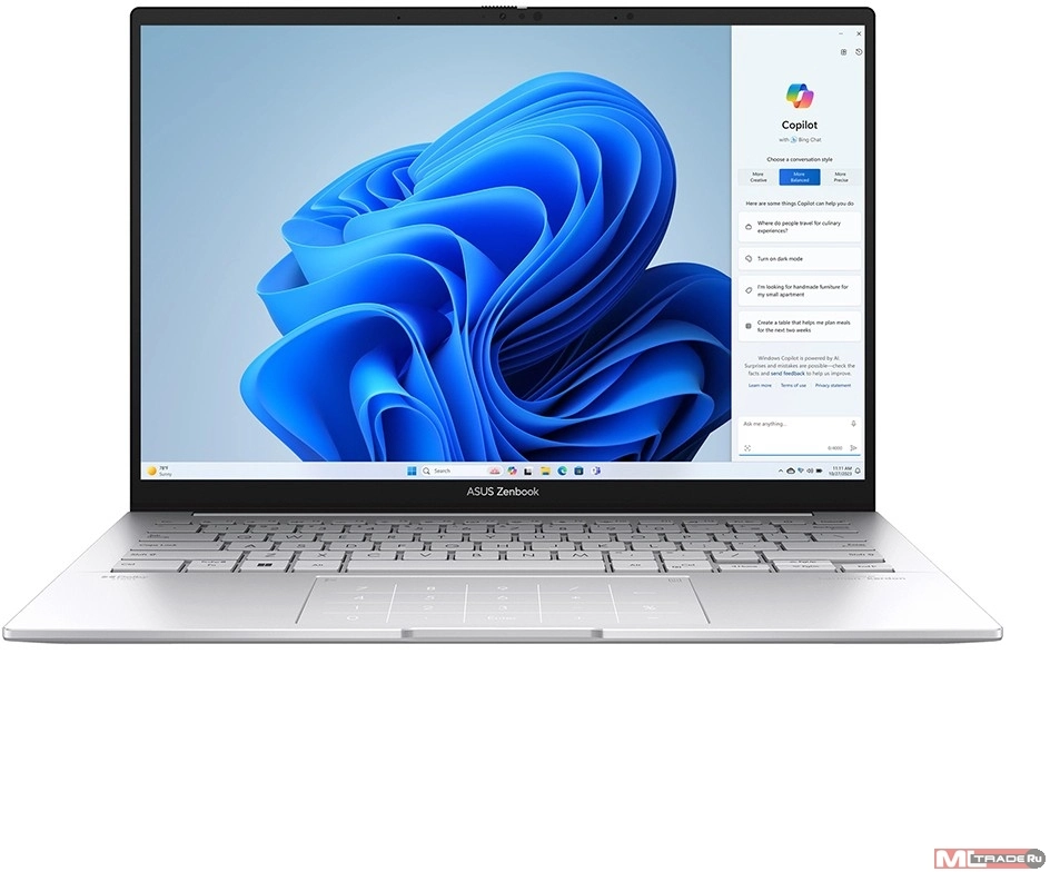 Ноутбук ASUS Zenbook 14 Special UX3405CA-QL680 [90NB14W4-M010B0] Foggy Silver 14" (OLED WUXGA Touch Ultra 9 285H/