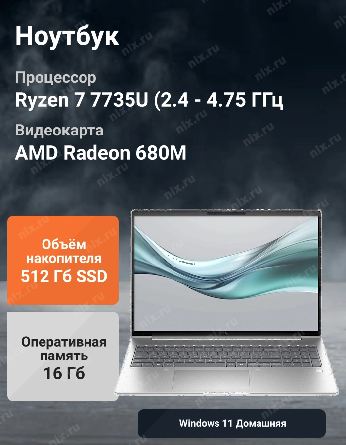 Ноутбук HP EliteBook 665 G11 [8Z717AV] Silver 16" (FHD Ryzen 7 7735U /16Gb /SSD512Gb/ AMD Radeon/Windows 11 Home) | НИКС Екатеринбург