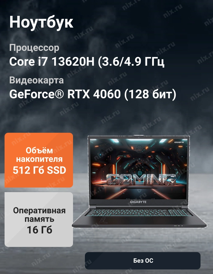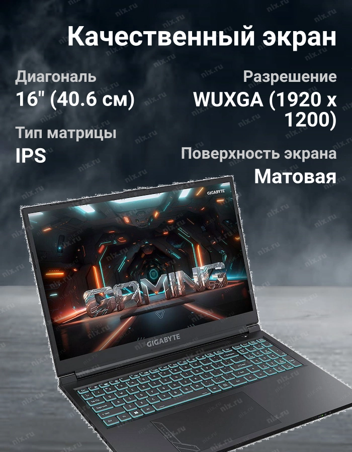 Ноутбук Gigabyte G6 KF [KF-H3KZ853KD] Black 16" (IPS FHD+ i7-13620H/16GB/512GB SSD/RTX4060 8Gb/DOS)
