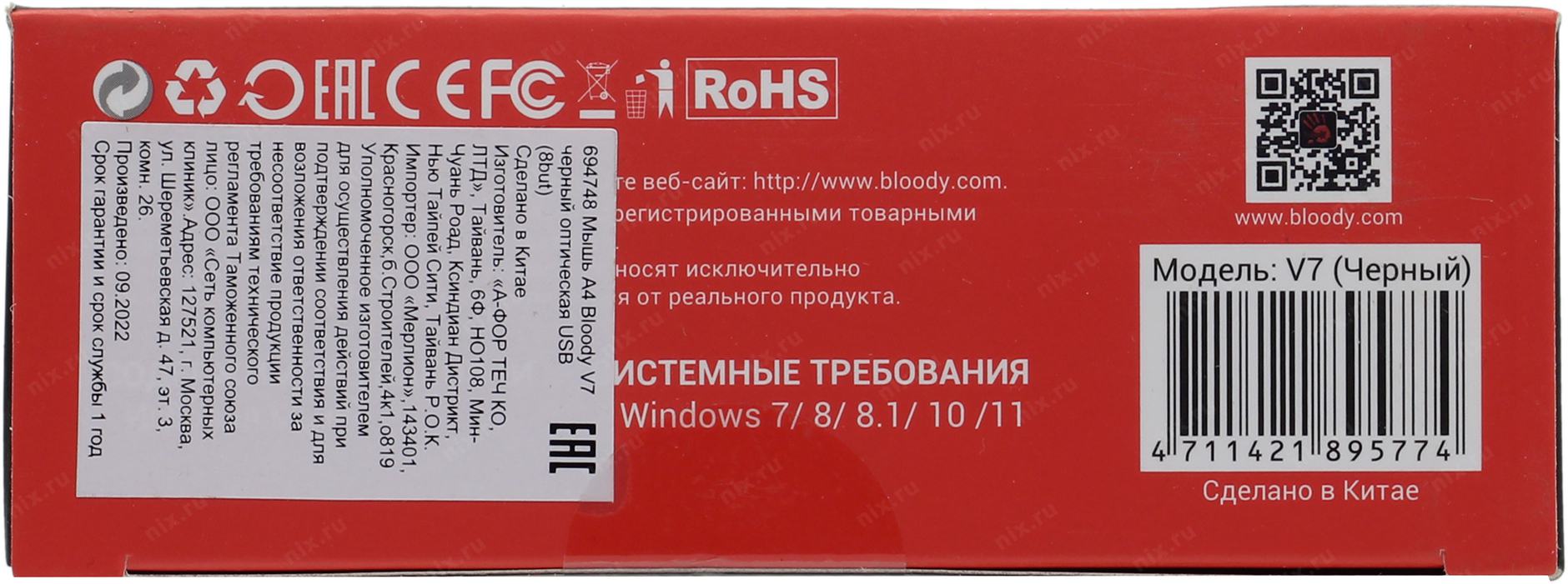 Мышь A4Tech A-4Tech Мышь Bloody V7 Gaming USB (черный оптическая 3200dpi USB игровая 7 but) [694748]