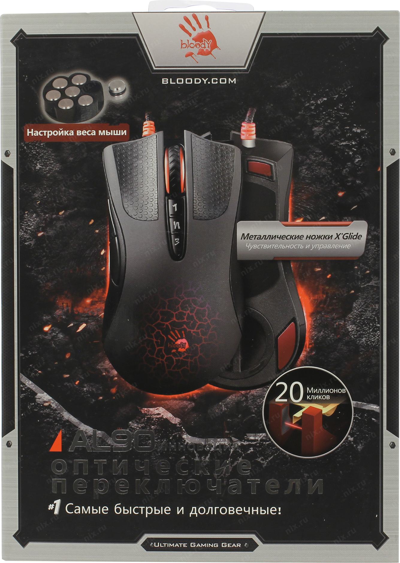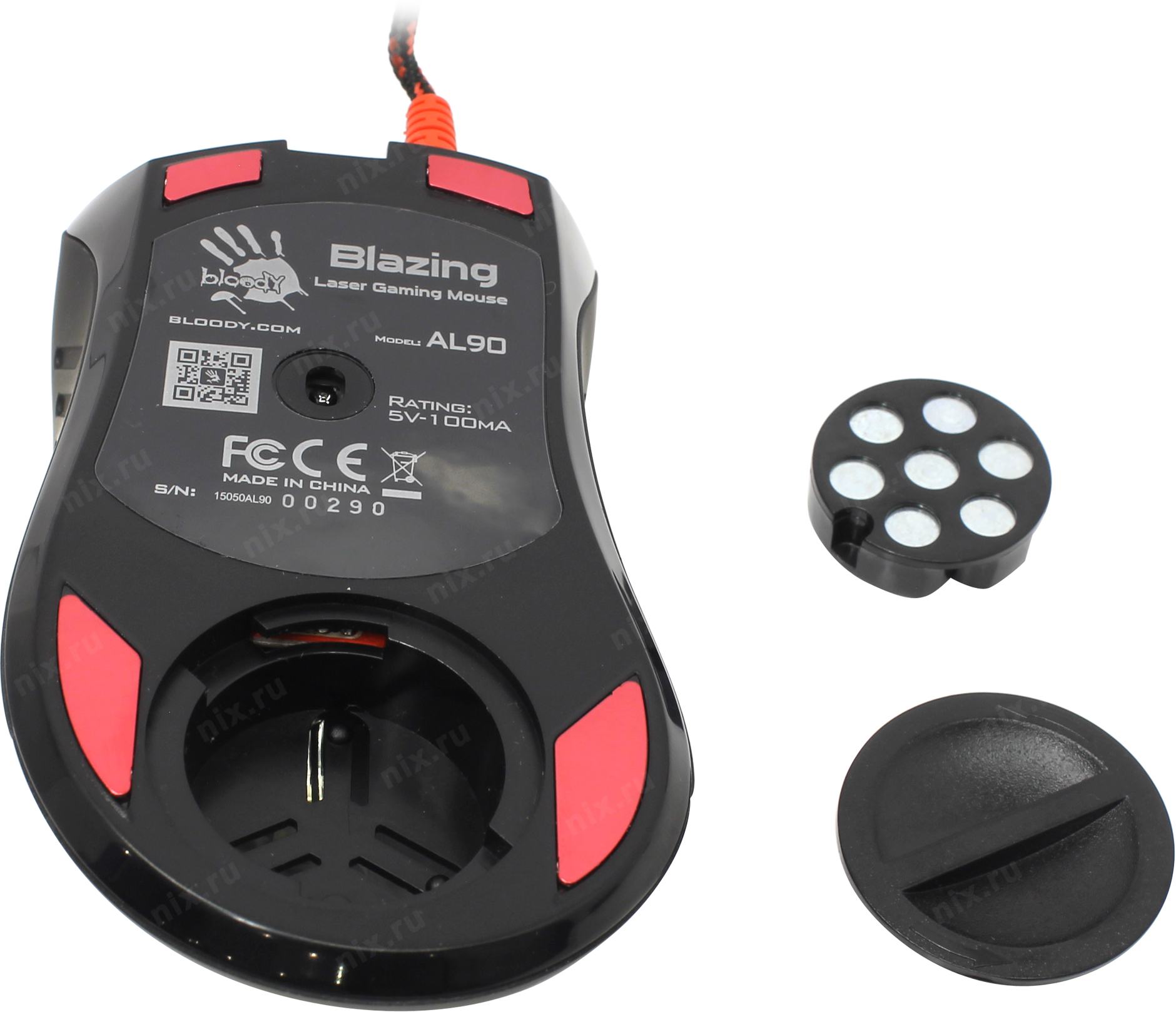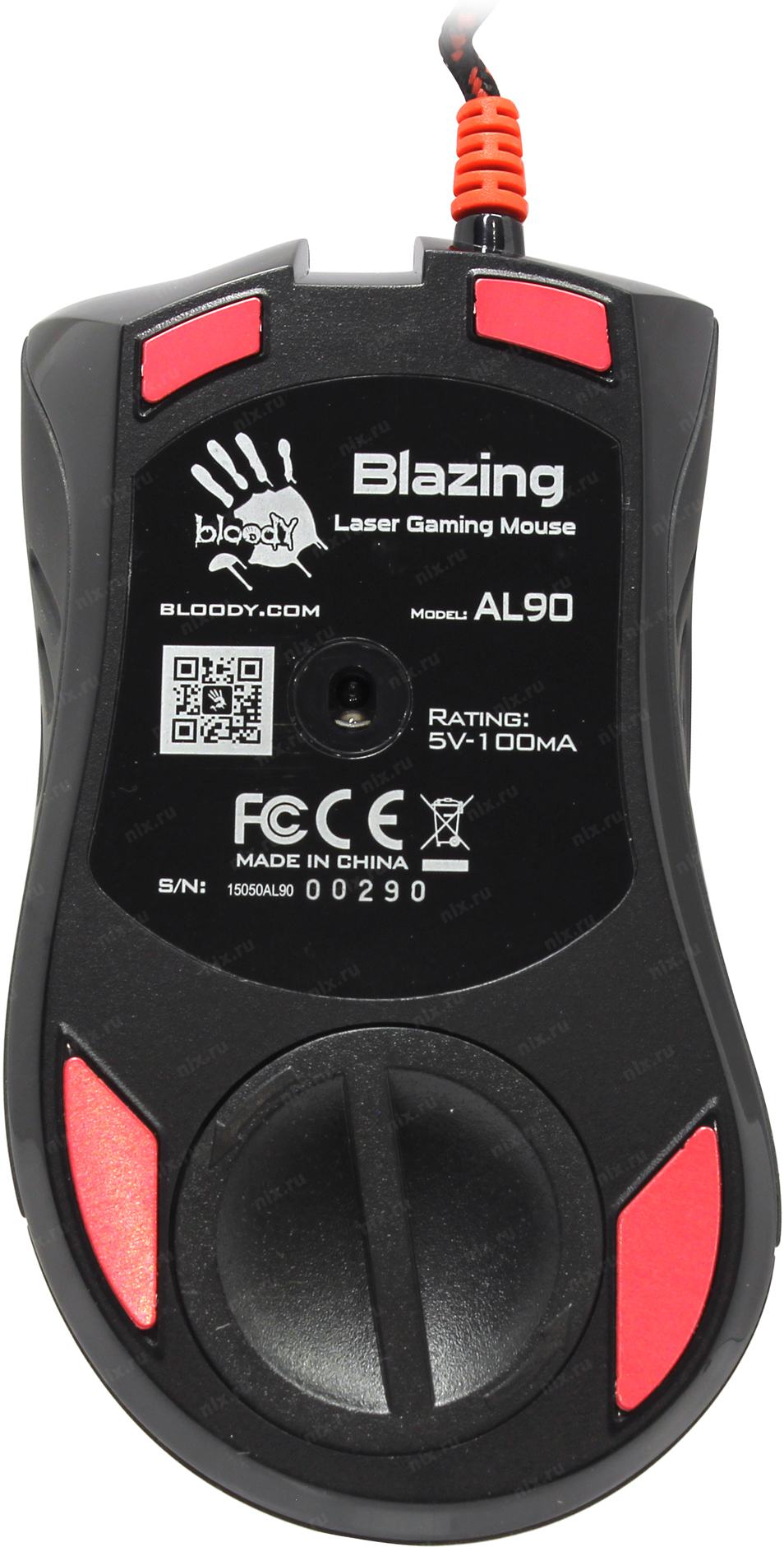 Мышь A-4Tech Мышь Bloody Blazing AL90 Black USB, лазерная (8200dpi) USB2.0 игровая (7but) [293569] [AL90ACTIVATED]