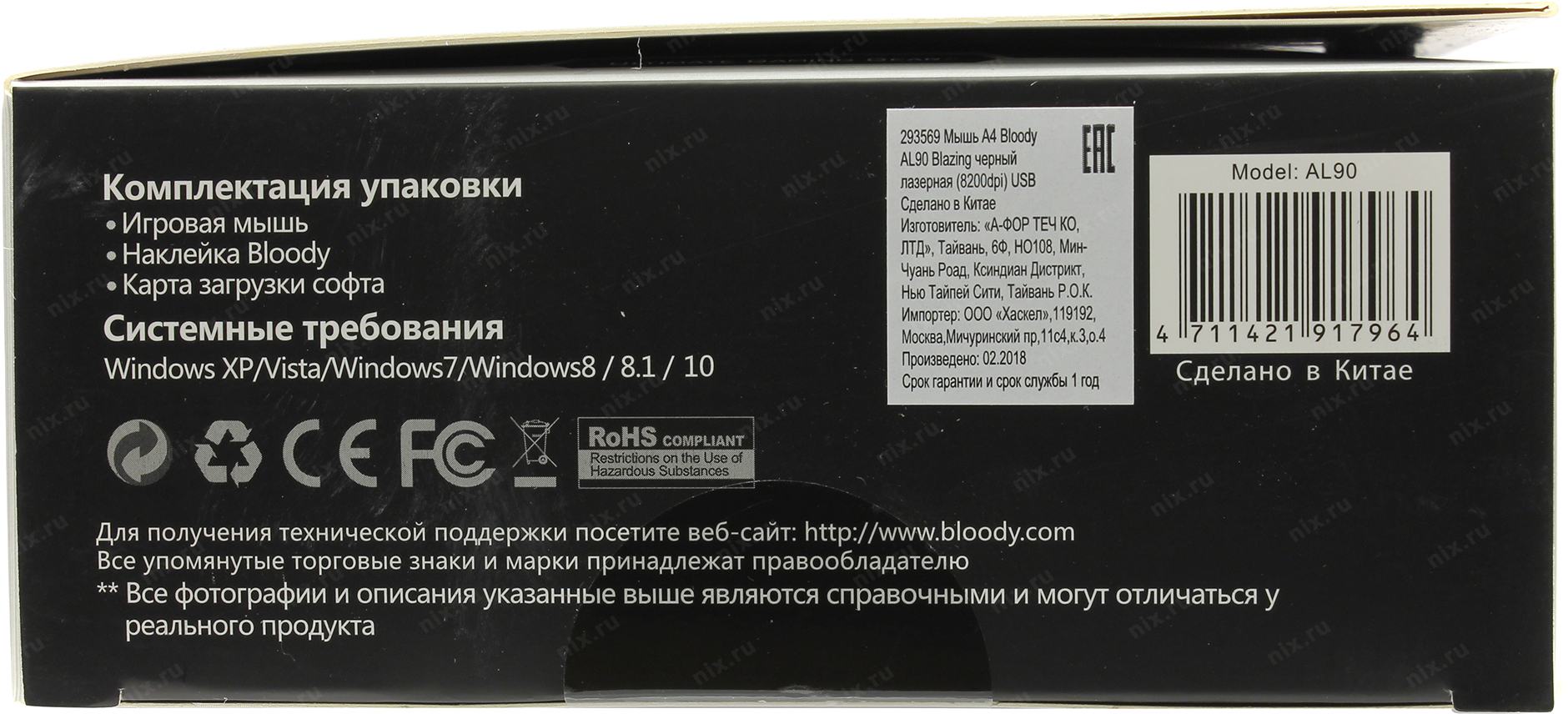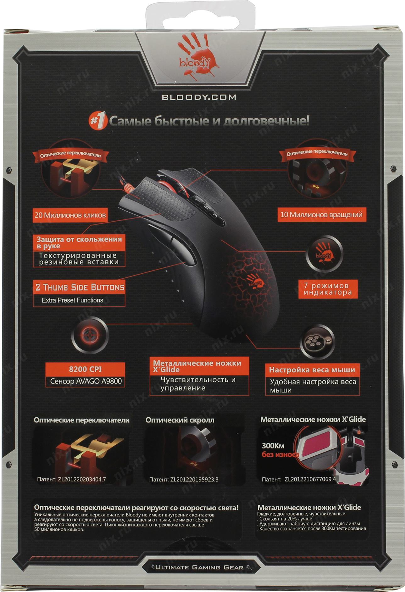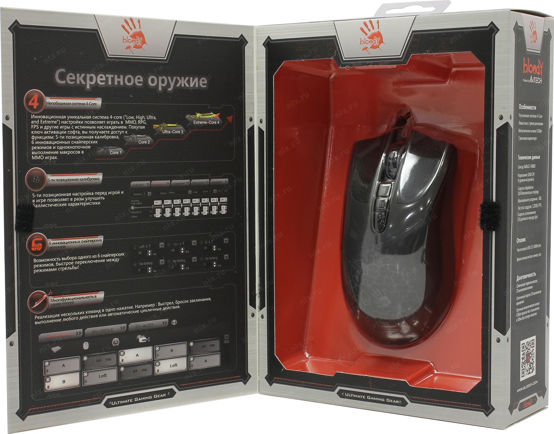Мышь A-4Tech Мышь Bloody Blazing AL90 Black USB, лазерная (8200dpi) USB2.0 игровая (7but) [293569] [AL90ACTIVATED]