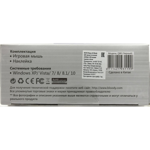 Мышь A4Tech A-4Tech Мышь Bloody Q80 черный оптическая (3200dpi) USB игровая (8but) [482452] [Q80BLACK]