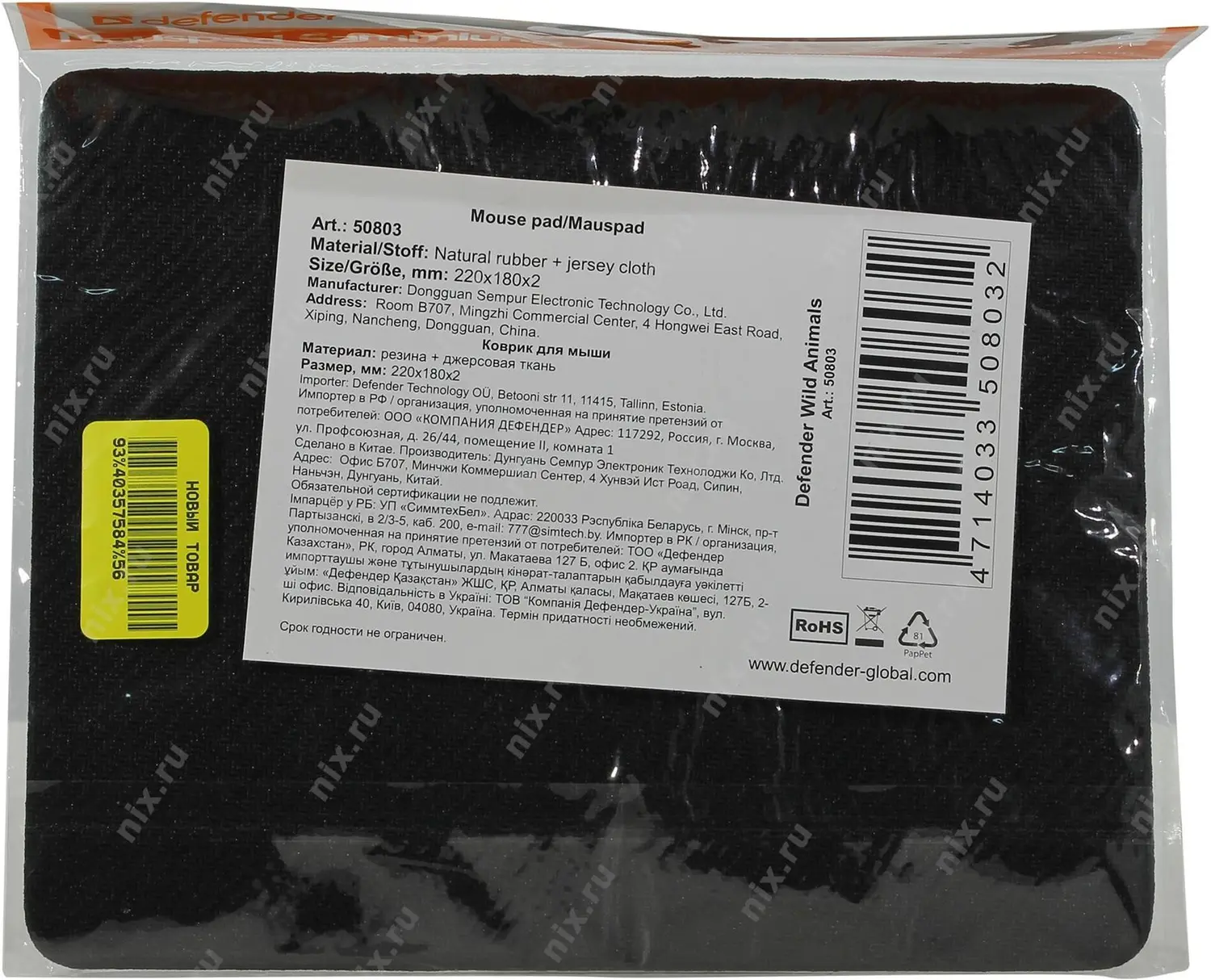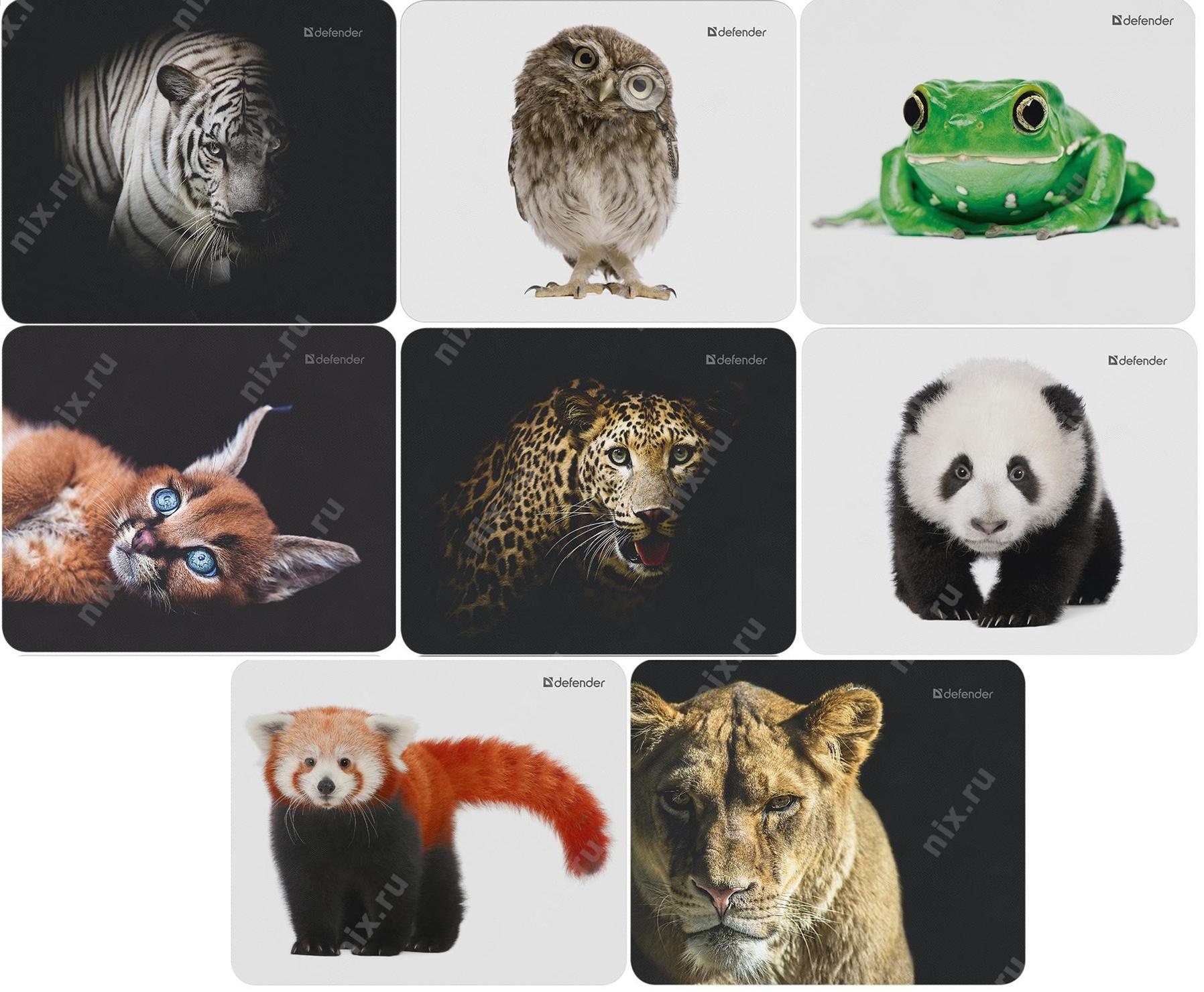 Коврики Defender Коврик для компьютерной мыши Wild Animals, 220x180x2 мм, 8 видов [50803]