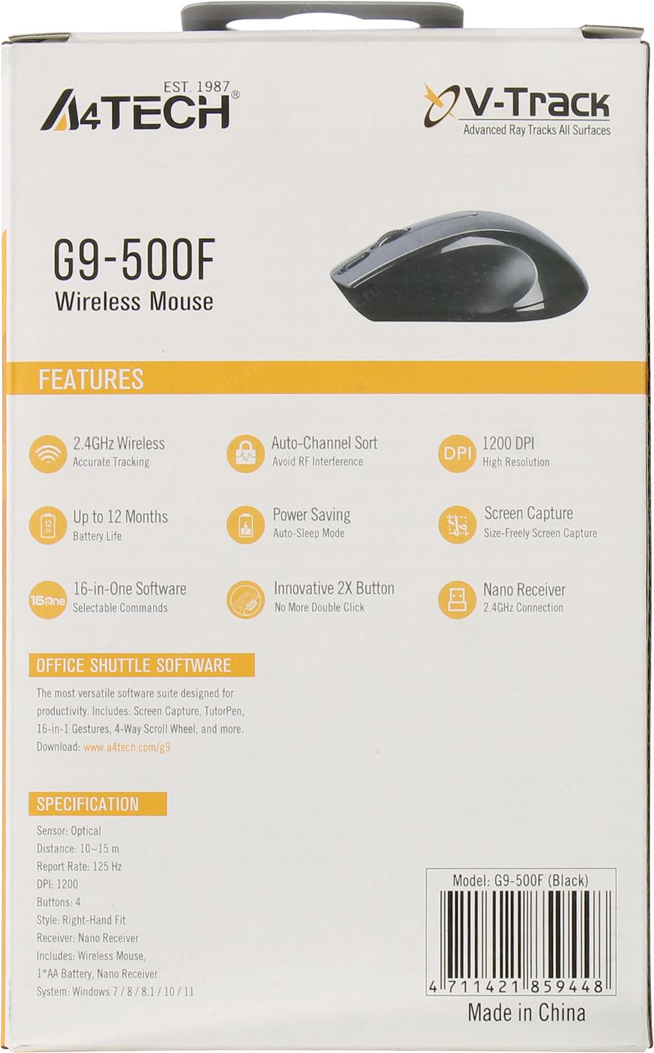 Мышь A4Tech V-Track Mouse <G9-500F-1 Black> (RTL) USB 4btn+Roll, беспроводная, уменьшенная