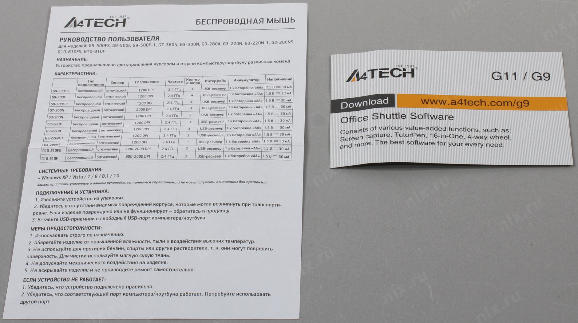 1 батарейка типа AA, USB-приемник