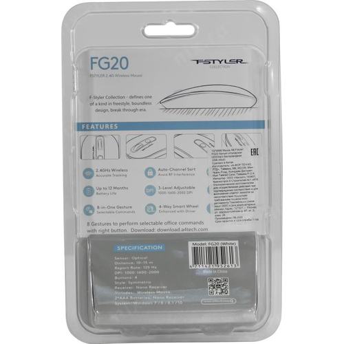 Мышь A4Tech Fstyler FG20 белый оптическая 2000dpi беспров. USB для ноутбука 4but (FG20 WHITE)