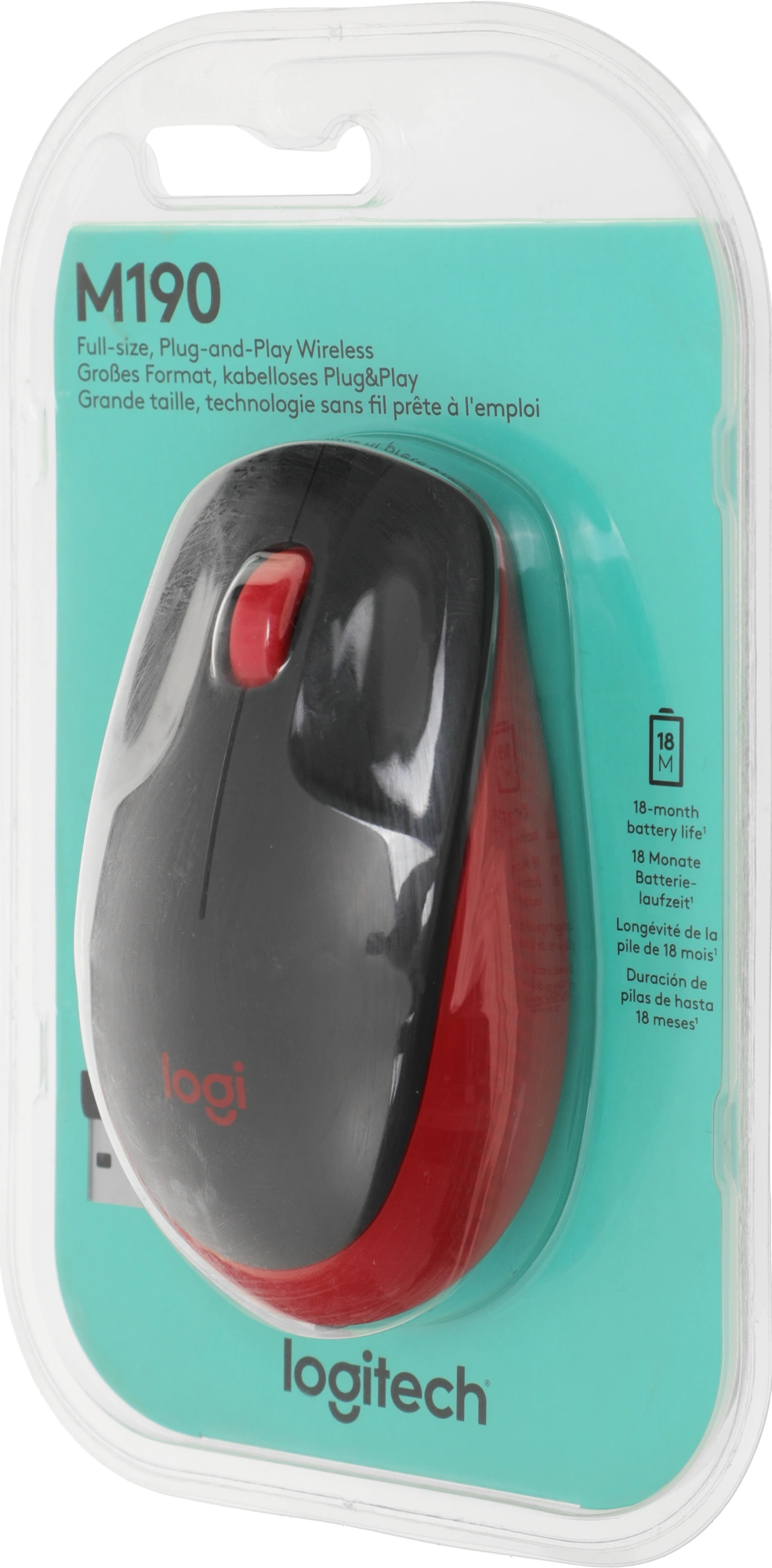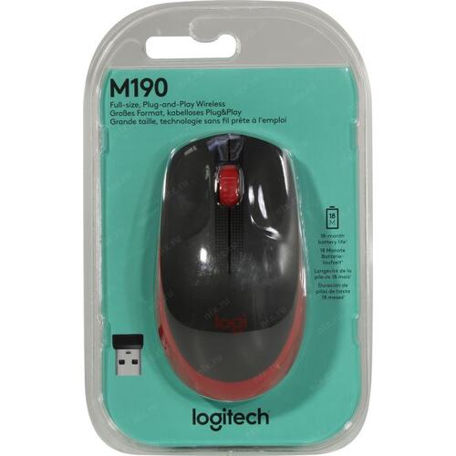 Мышь 910-005908 Мышь Logitech M190 красный/черный оптическая (1000dpi) беспроводная USB (2but)